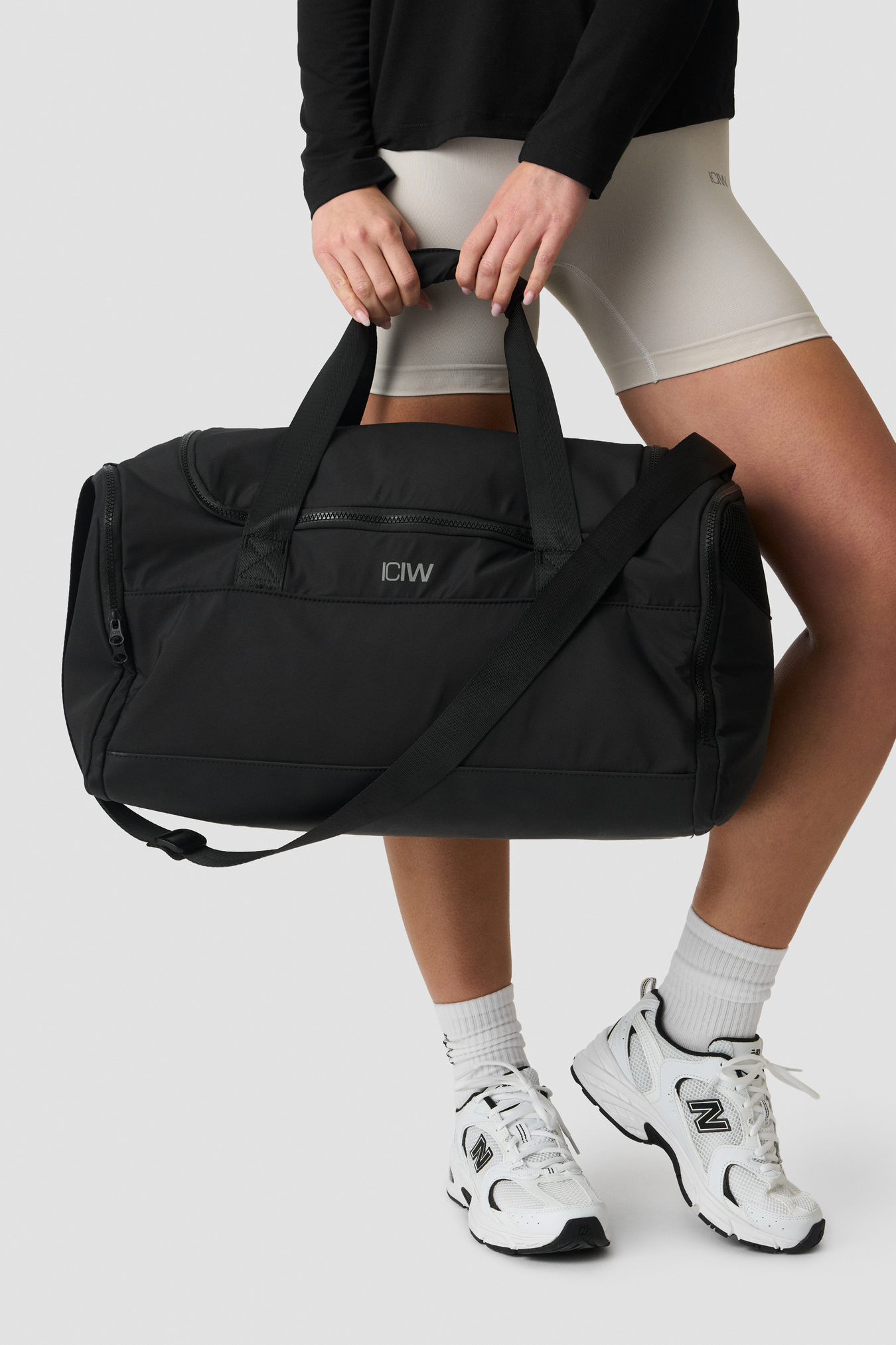 Training and travel duffel bag. The spacious main compartment opens with a double zip for easy packing, with a zipped side pocket and a dedicated zipped shoe compartment to keep your kit separate. Carry it by hand or over the shoulder, and rely on the extra-durable base to withstand everyday use. Finished with an ICIW reflective logo on the outside and a lining featuring an all-over ICANIWILL logo. Inside, there is one zipped pocket for smaller essentials. The bag can be wiped clean with a damp cloth when needed. Main fabric and lining: 100% Polyester.