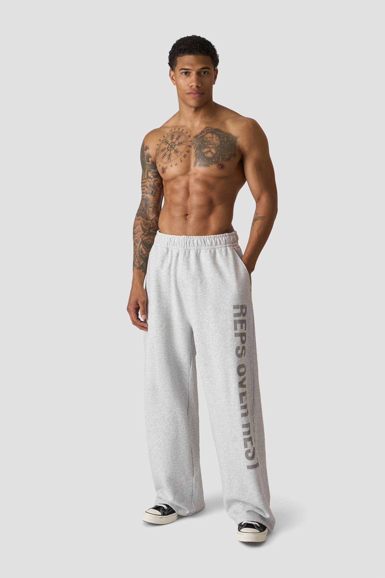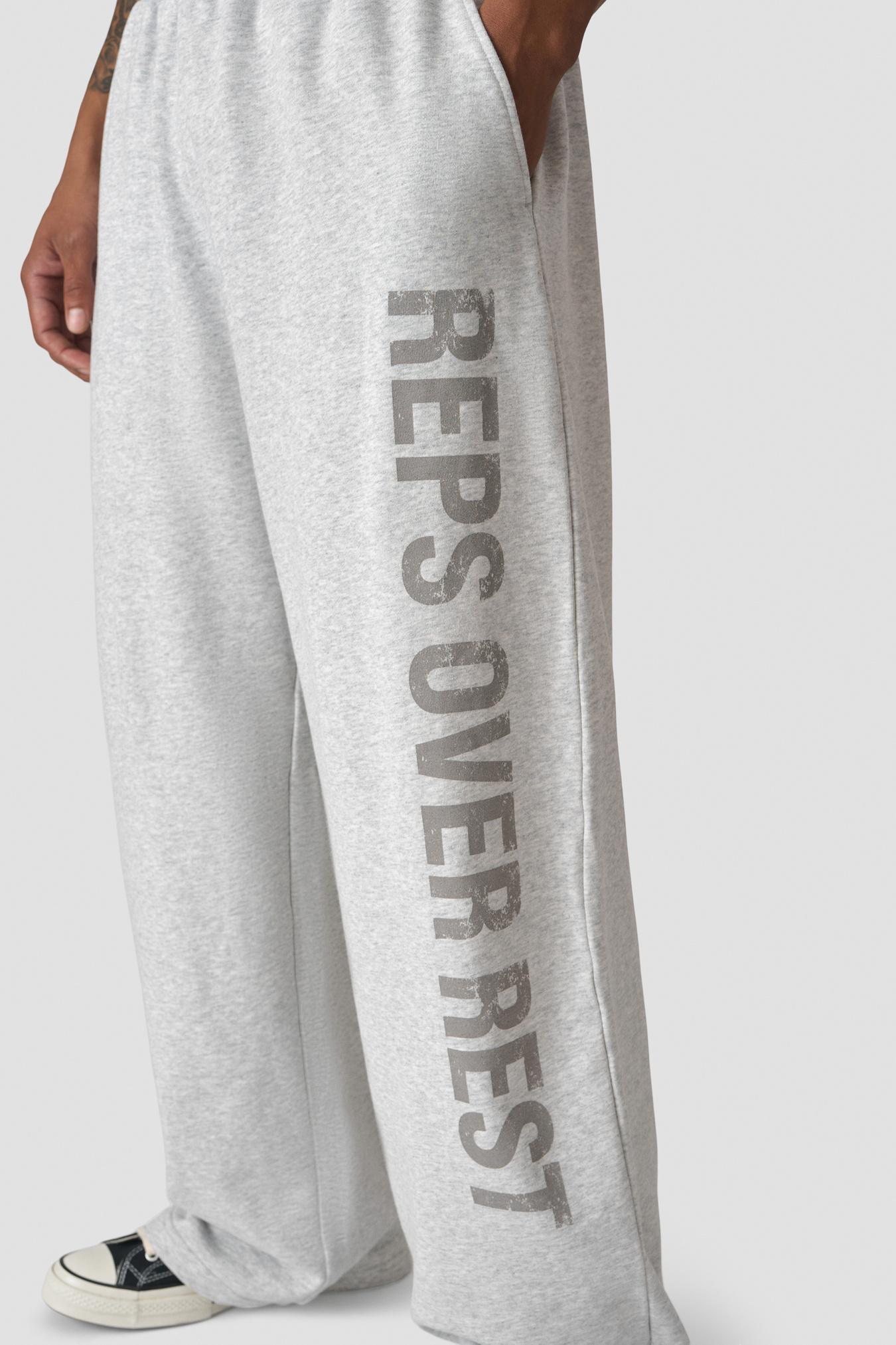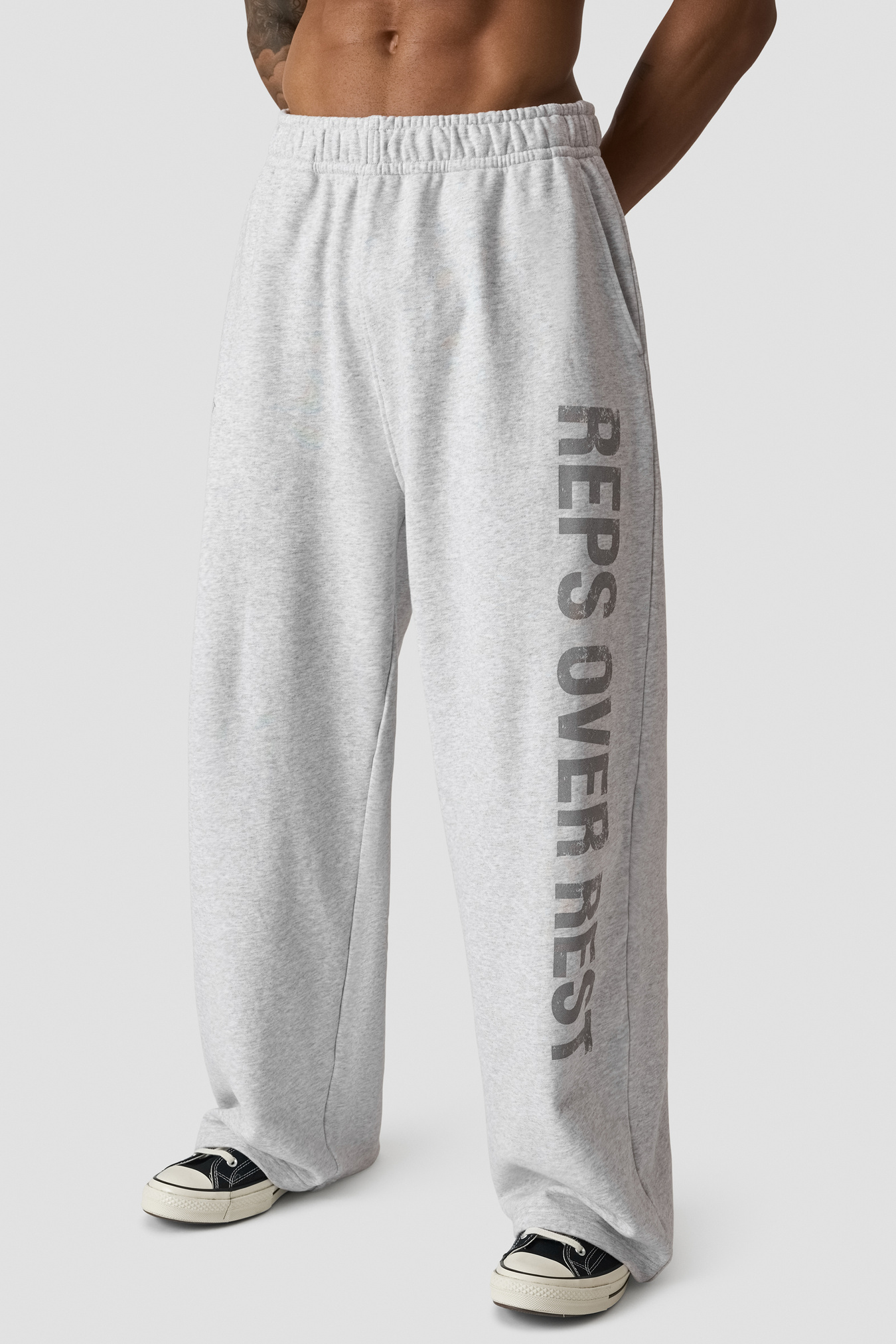 Wide-leg sweat trousers in heavy French terry. Grit Wide Trousers are made from a substantial cotton fabric that drapes with a relaxed, roomy silhouette for all-day comfort. The elastic waistband with a flat drawcord lets you personalise the fit, while the clean finish and subtle ICIW branding make them easy to style from warm-ups to rest days. Full length with a loose fit for plenty of freedom to move. Heavyweight French terry cotton, elastic waistband with flat drawcord, wide leg, relaxed fit, full length, subtle ICIW branding. 100% Cotton.