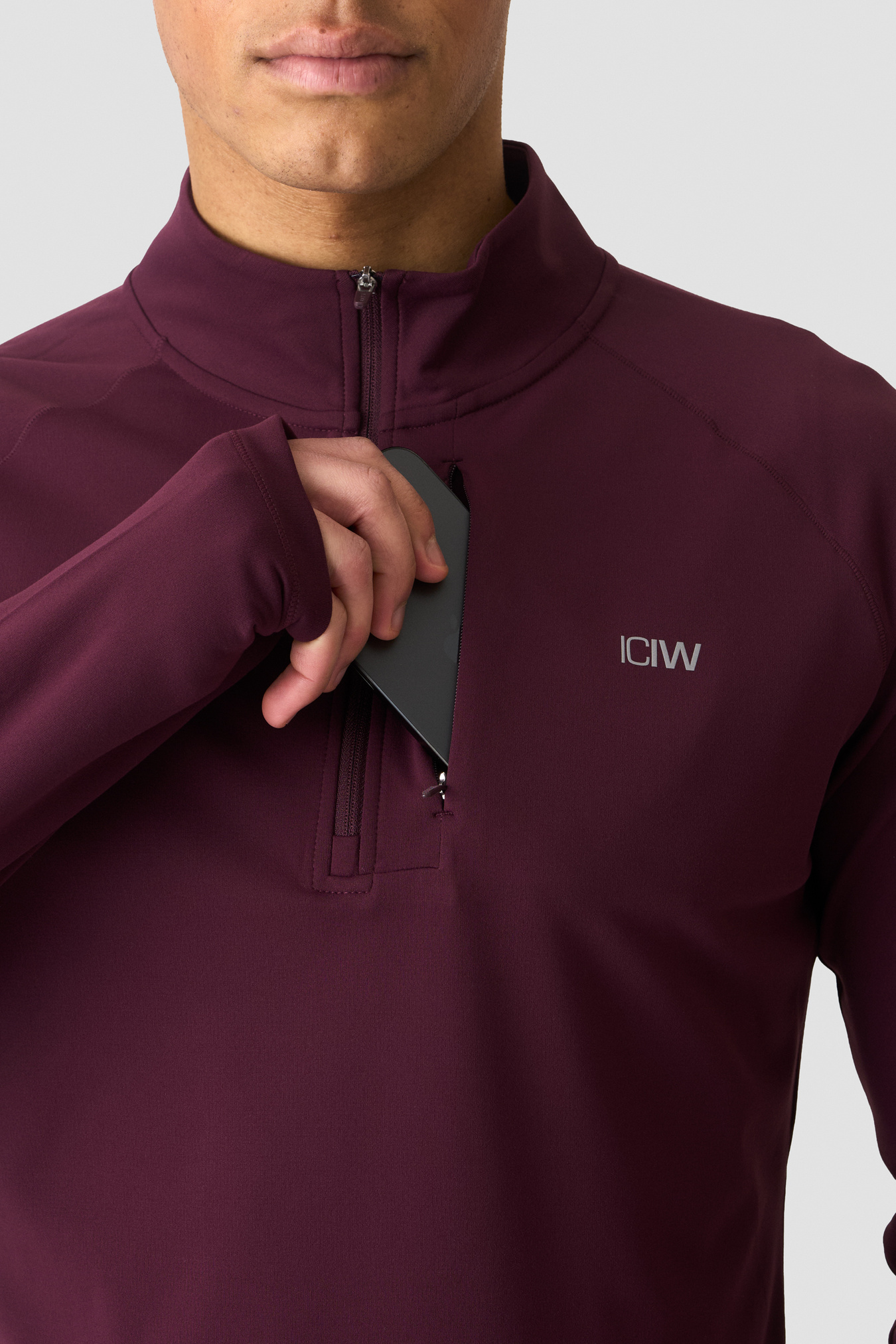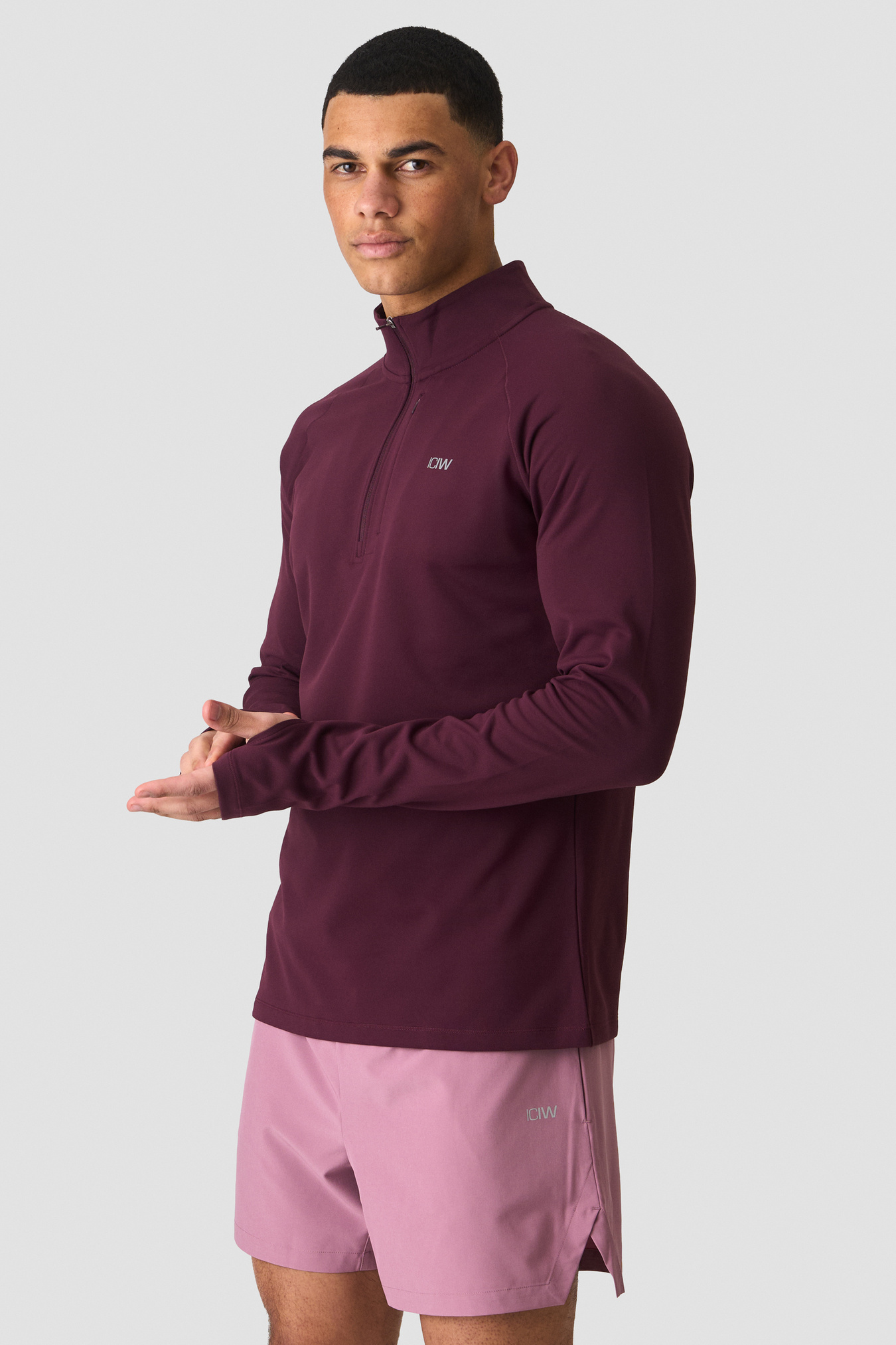 Lightweight, breathable midlayer longsleeve with ¼ zip. Athletic fit.