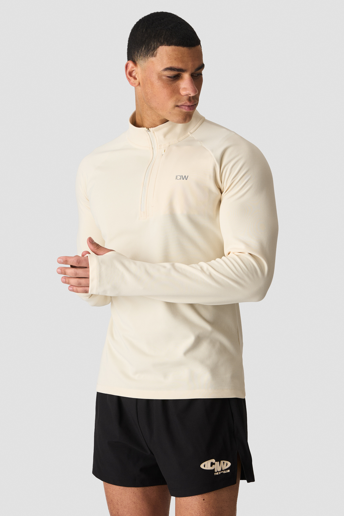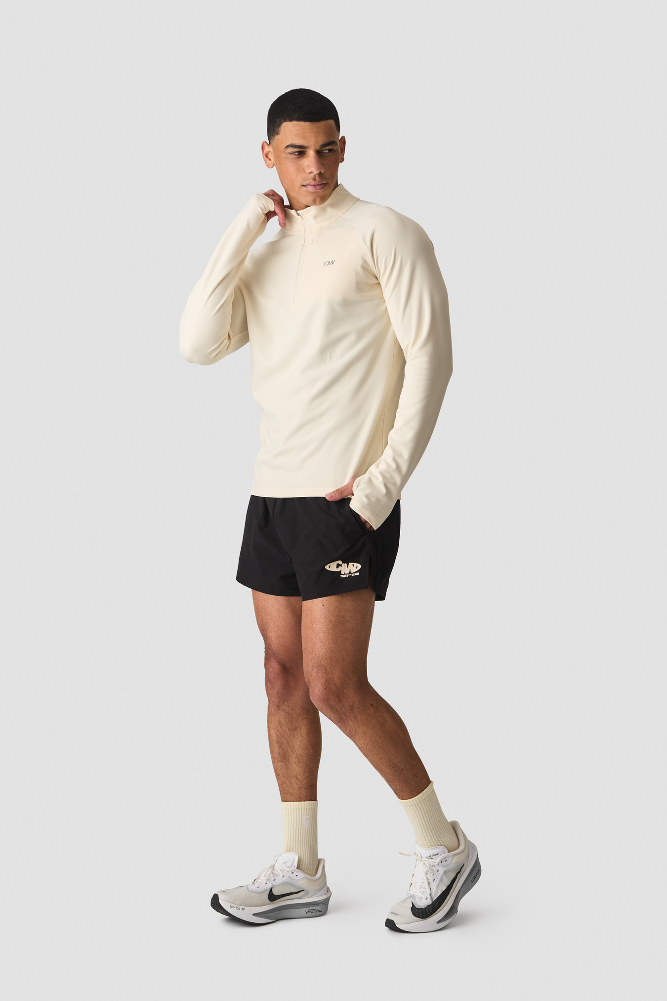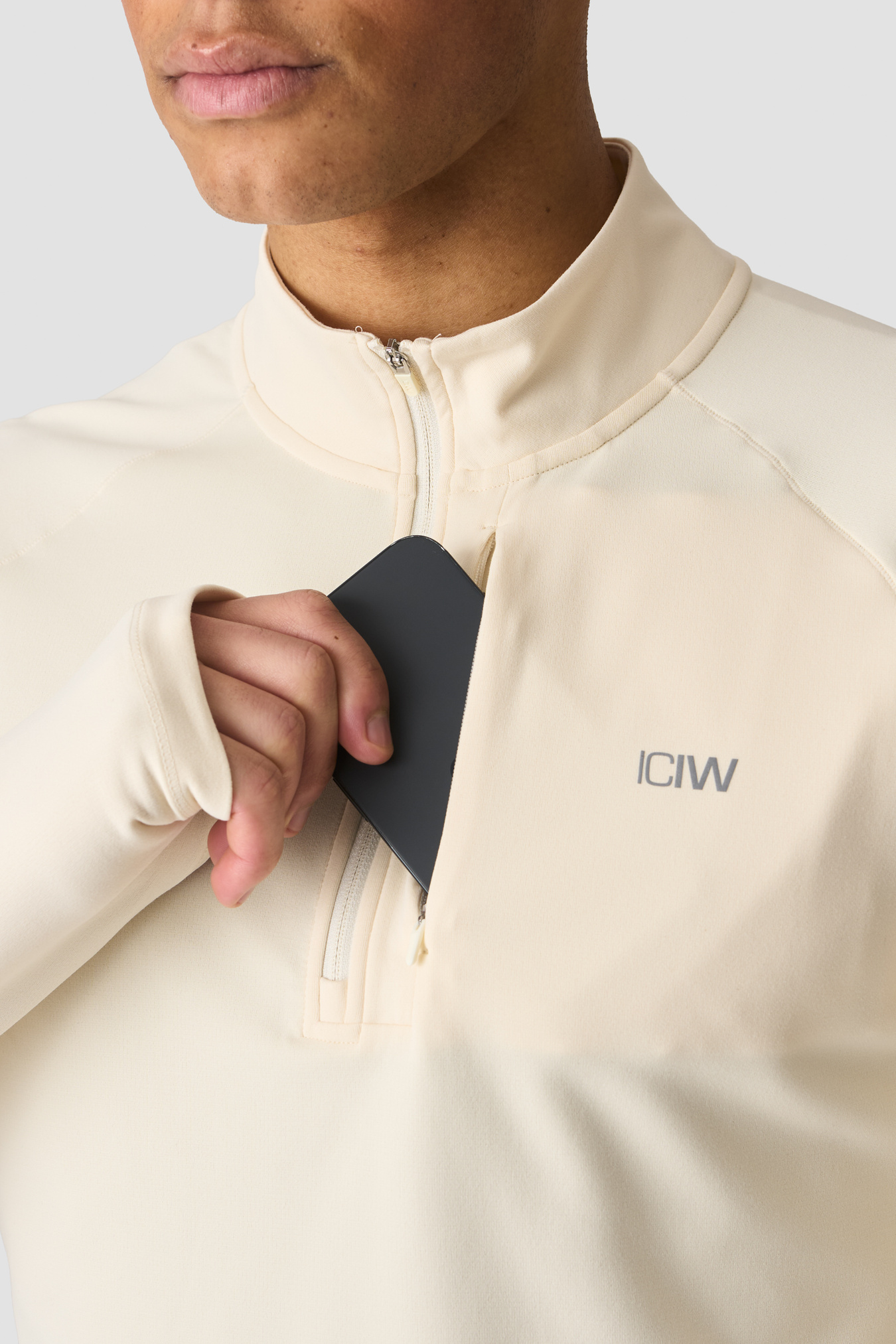 Lightweight, breathable midlayer longsleeve with ¼ zip. Athletic fit.