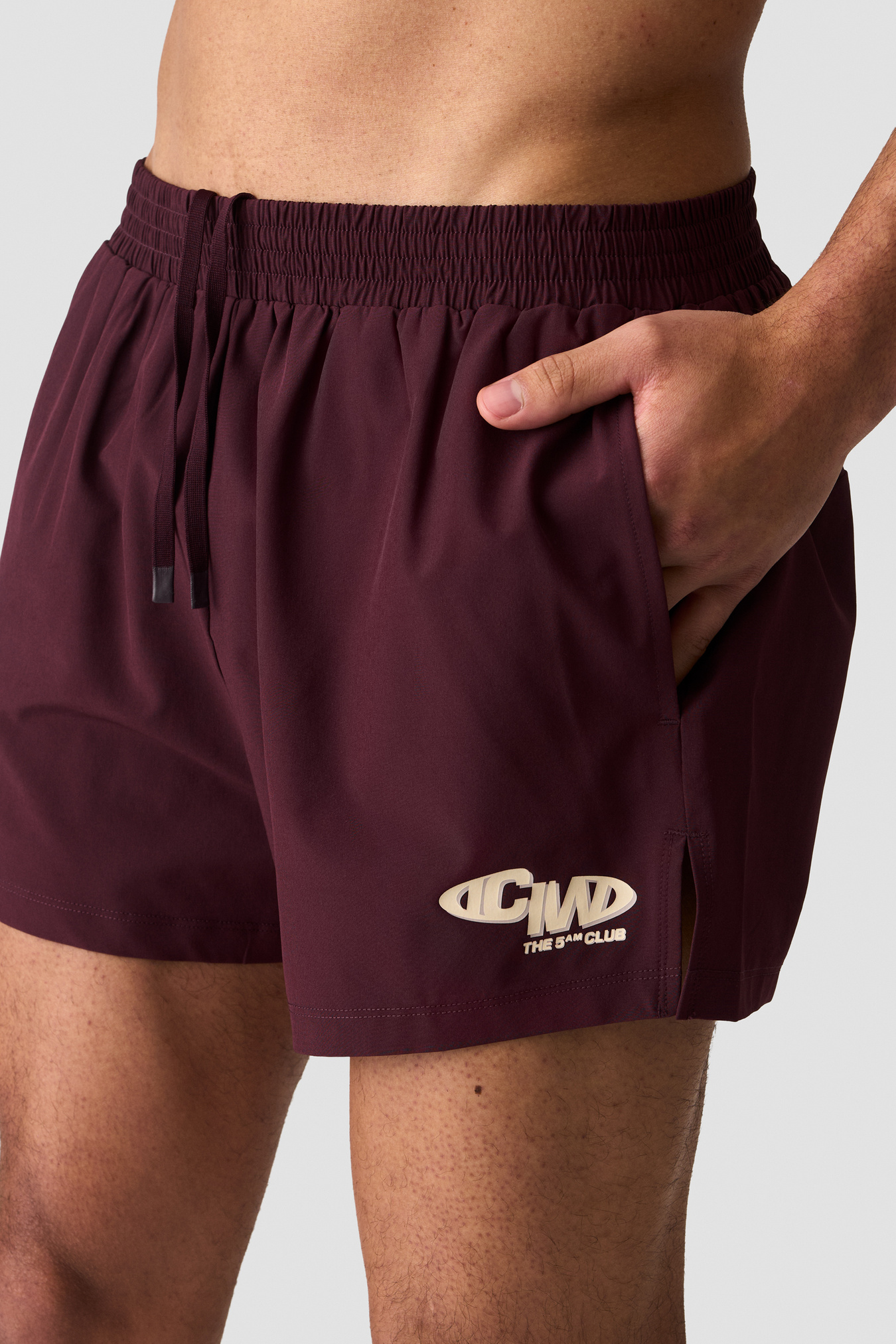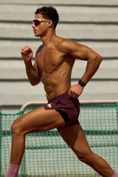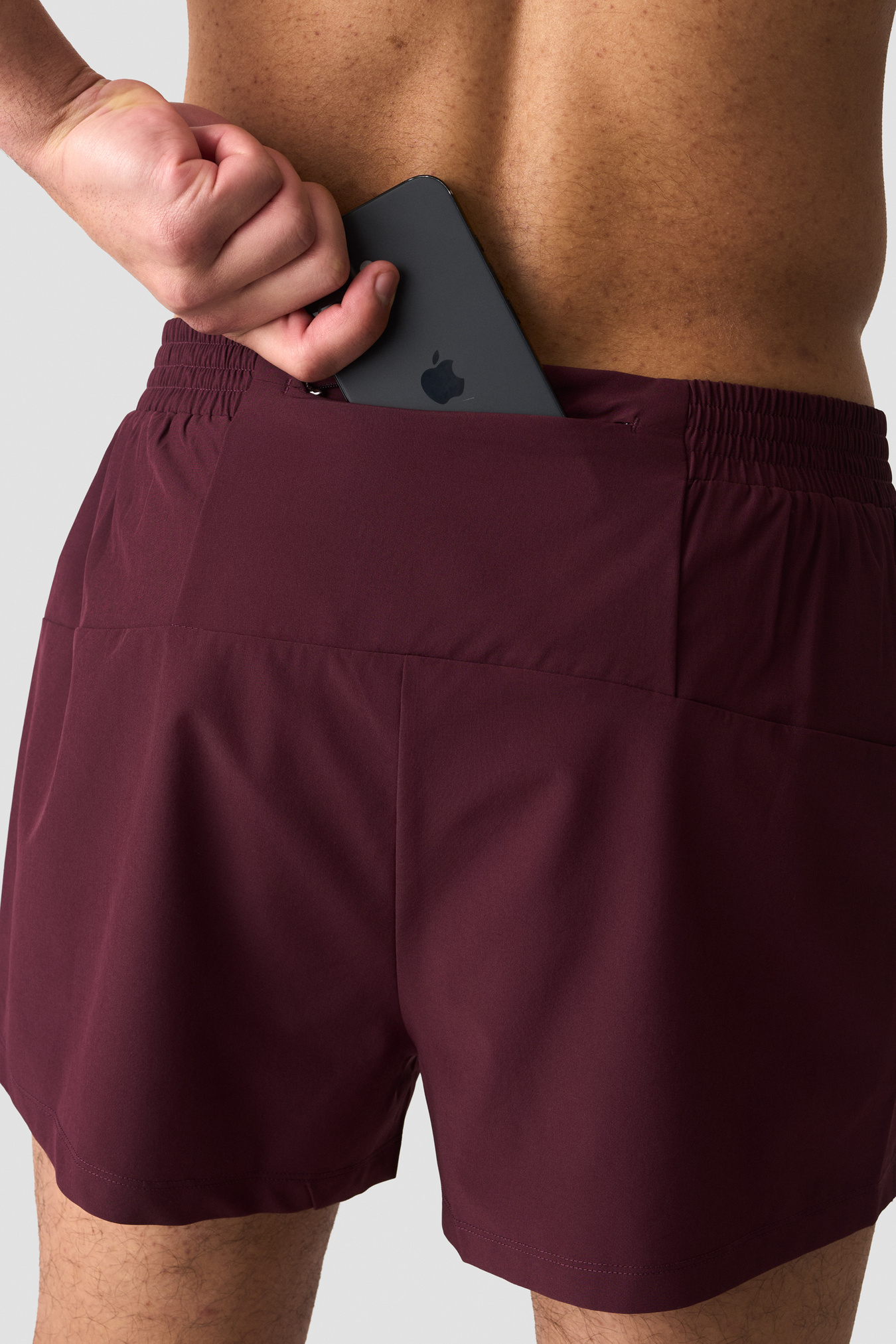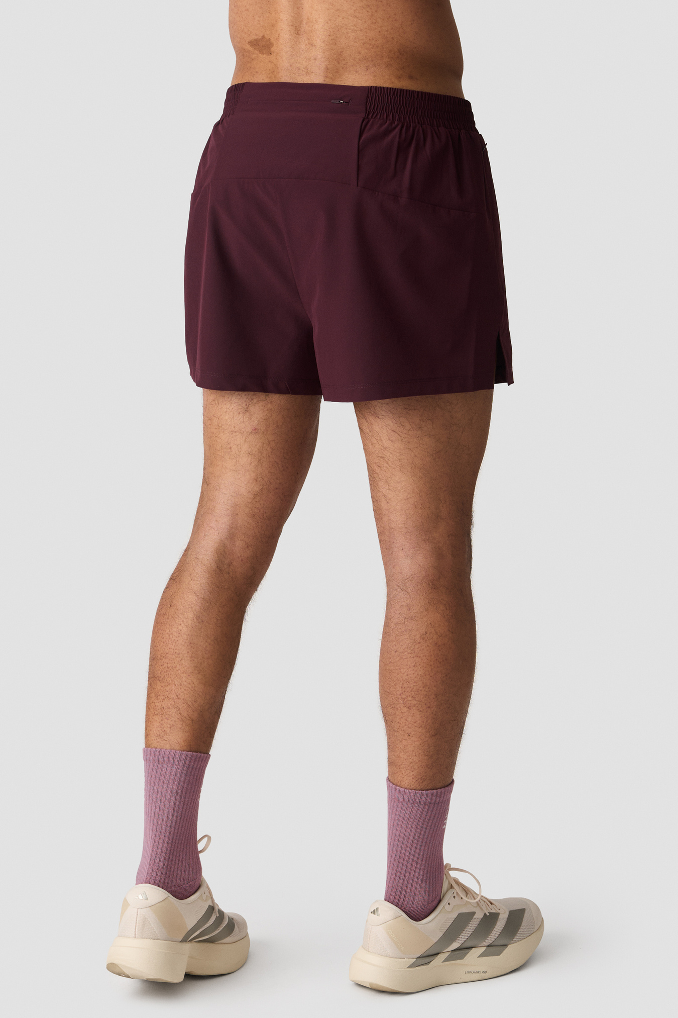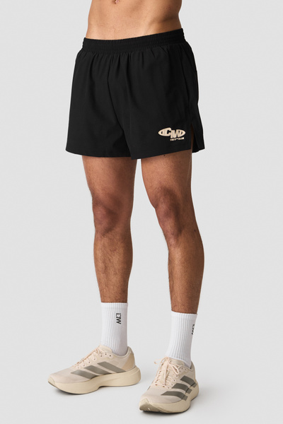 Lightweight running shorts built for speed and comfort. Mirage Cardio Shorts 3" are made from a breathable, sweat‑wicking four‑way stretch fabric that moves with you on every stride. A supportive inner brief and an elastic waistband with an internal drawcord keep everything secure, while side slits add freedom of movement. Practical storage includes a hidden zip pocket on the right, an open welt pocket on the left and an invisible zip pocket at the back for essentials. Finished with subtle print artwork at the hem. Regular fit with a 3" (7.5 cm) inseam. Approx. 170 g in size M. Composition: Main fabric 90% Polyester, 10% Elastane. Inner brief 95% Polyester, 5% Elastane.