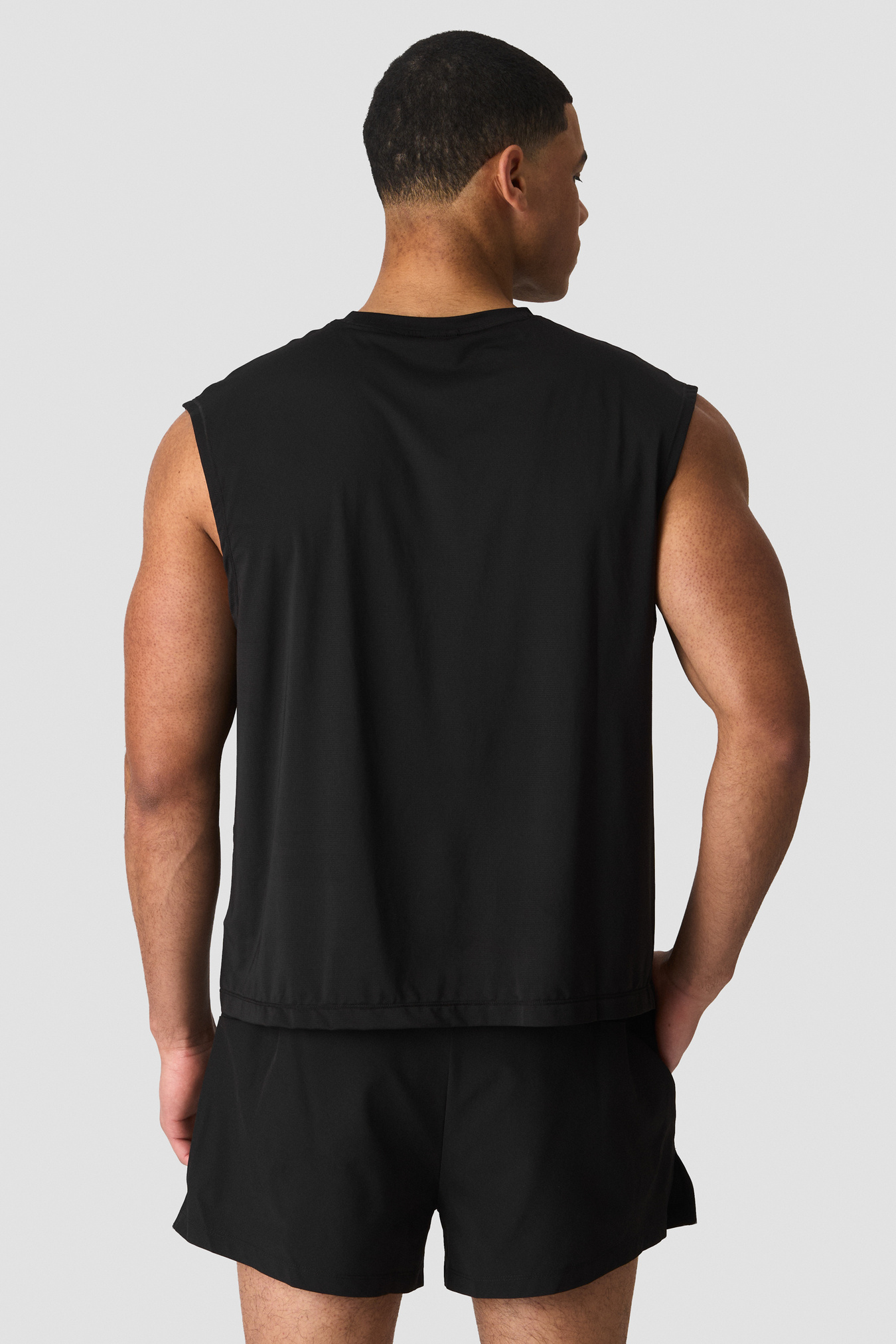 Sleeveless cardio tee in recycled polyester. Regular fit.