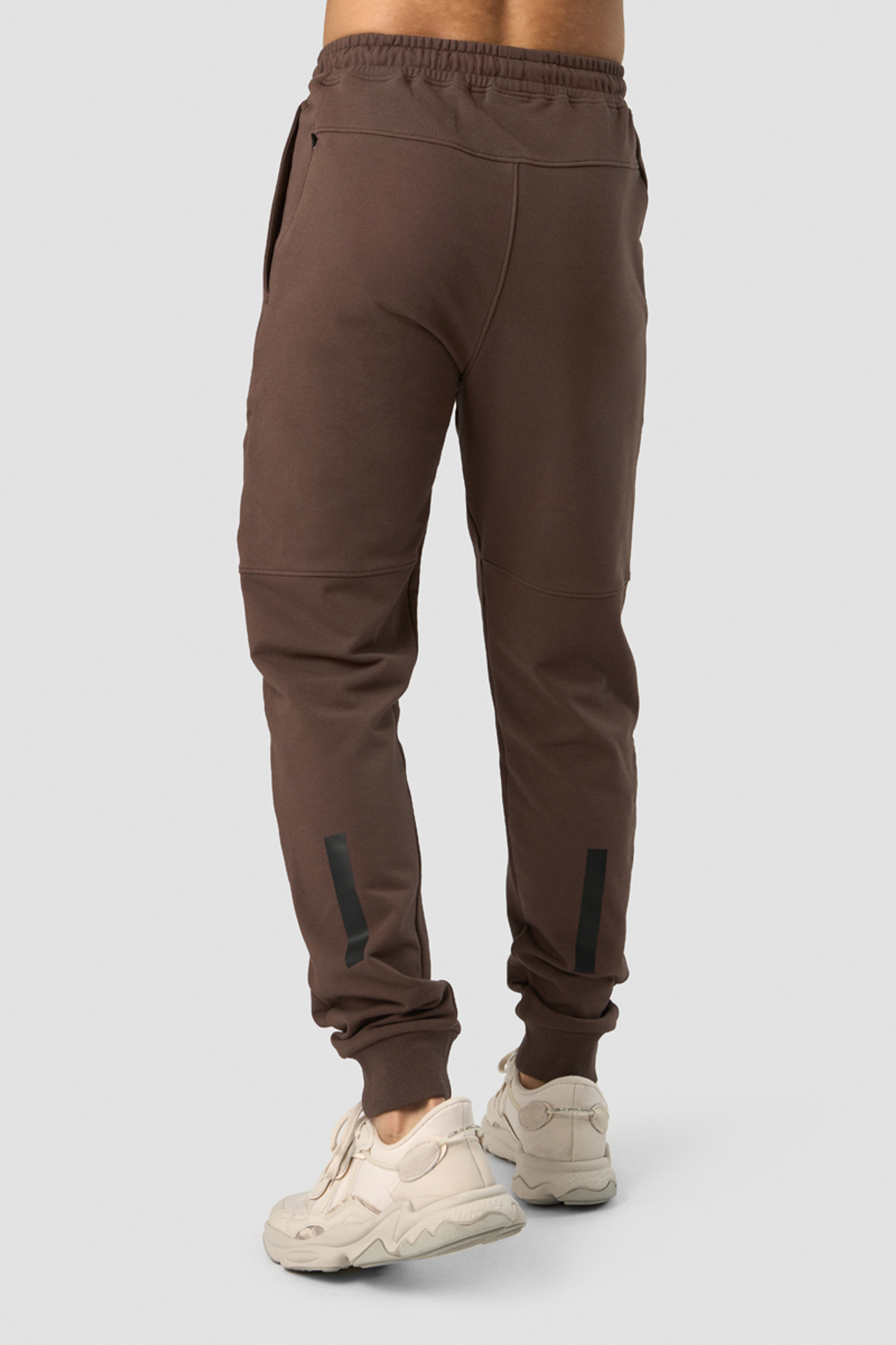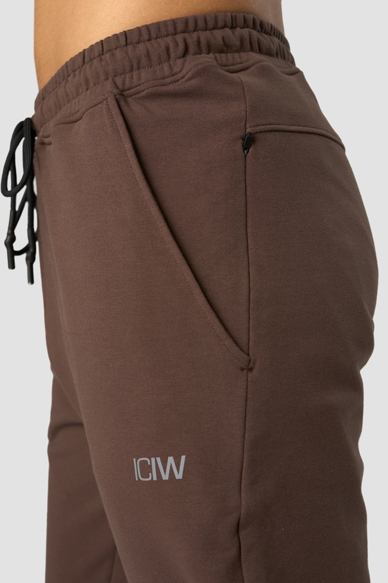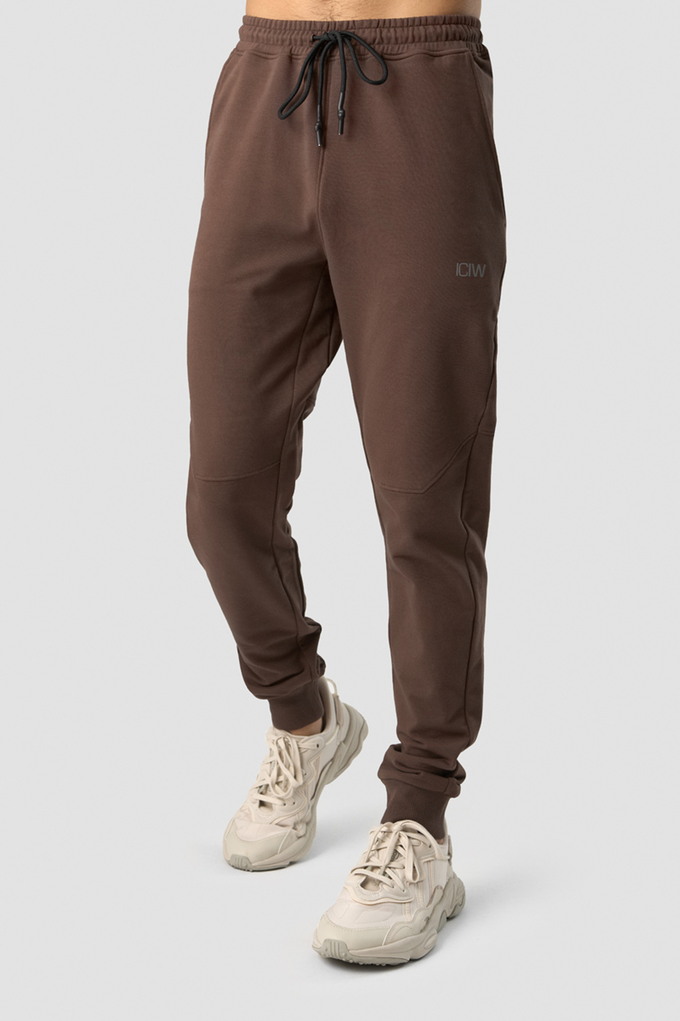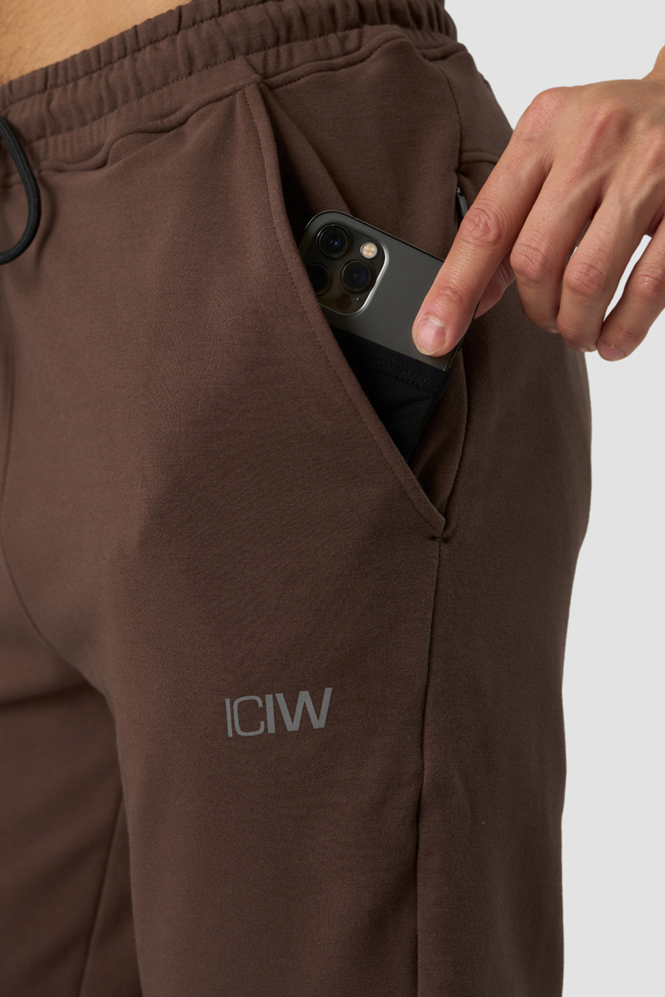 Sweat pants with pockets. Stride Sweat Pants are made for the gym or warm up. They are made out of a comfy cotton mix material that will keep its shape wash after wash. They have two open hand pockets, one hidden zip pocket as well as an inner pocket in a sweat resistant material for your phone. Elastic and drawstring waist will keep the pants in place. Rubber stripes at the back of the leg. Drawstring waist, two open pockets, inner pocket in sweat resistant material for cell phone, zip pocket at side seam for small items, ICIW logo at front, standard fit, full length. 59.4% Cotton, 34.1% Polyester 6.5% Elastane