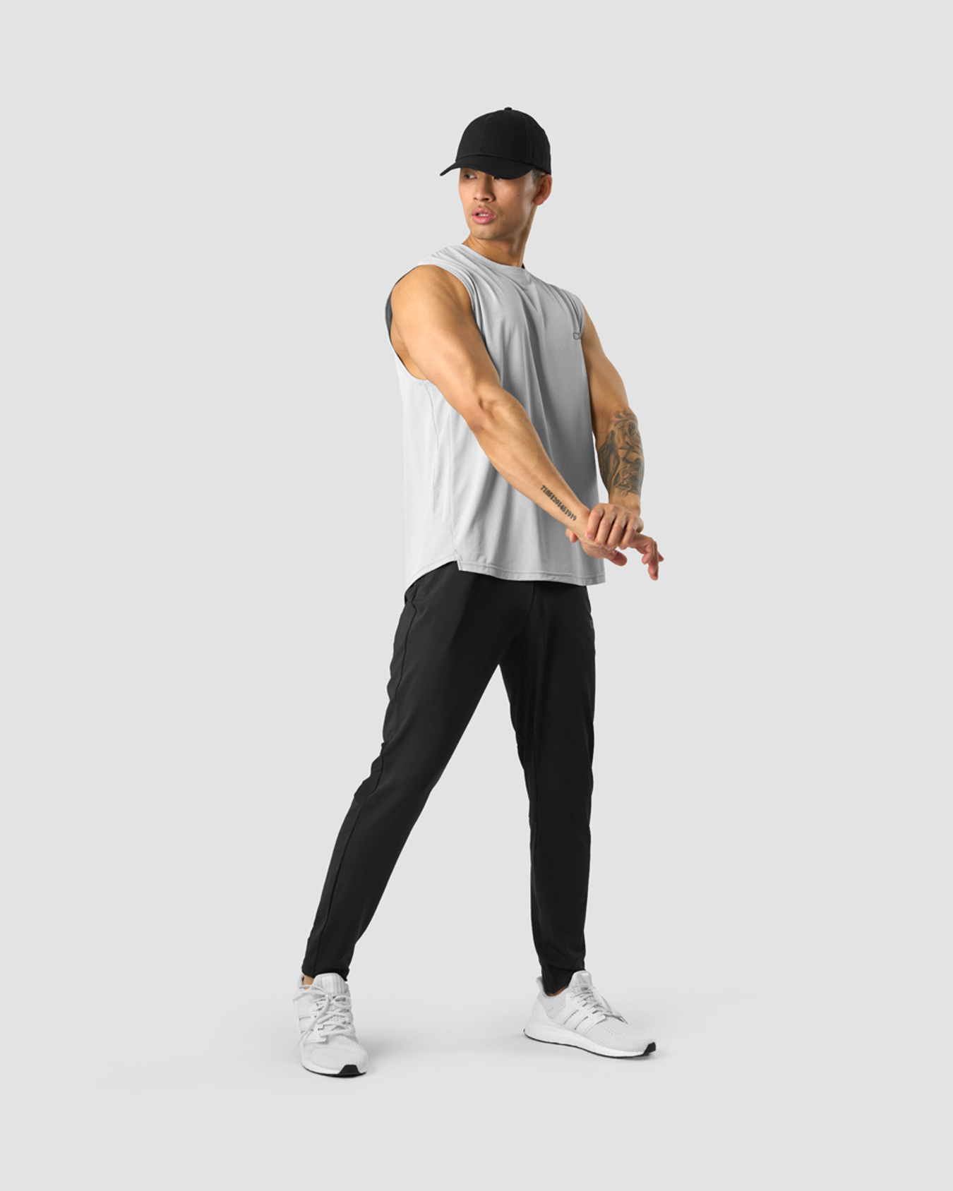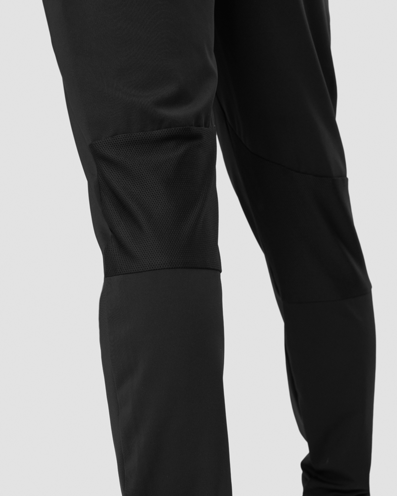 Workout pants with mesh panels. Stride Workout Pants are made for the gym and tough workouts. The smooth and stretchy fabric will help you move easily and without distractions. Mesh panels in the back of the knees as well as a mesh yoke in the back will keep you cool. Tapered fit with elastic at the back of the ankle.