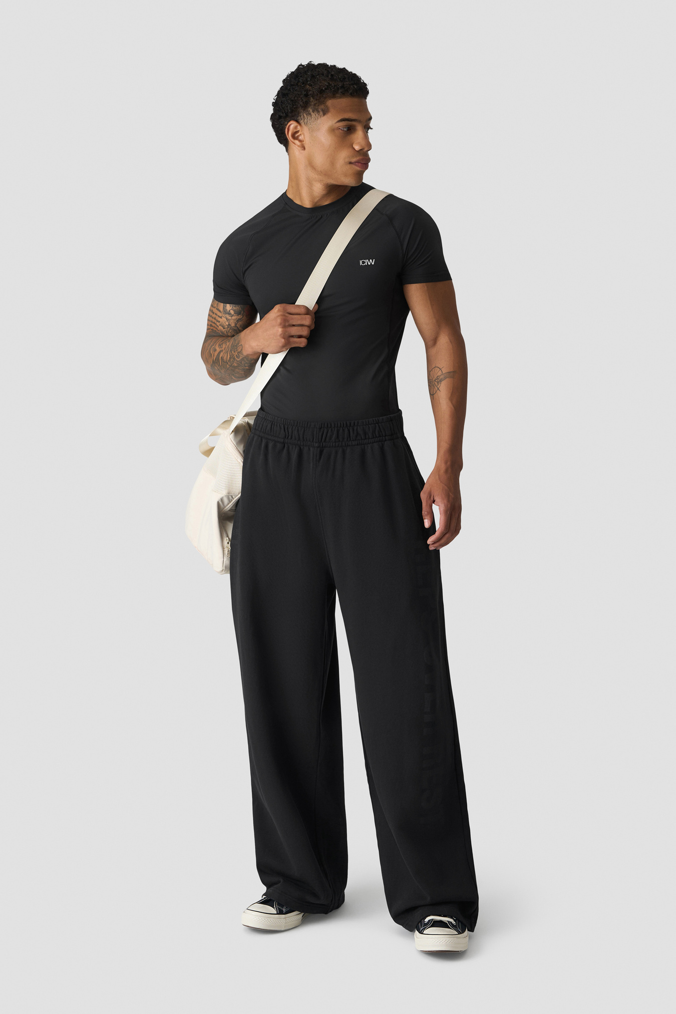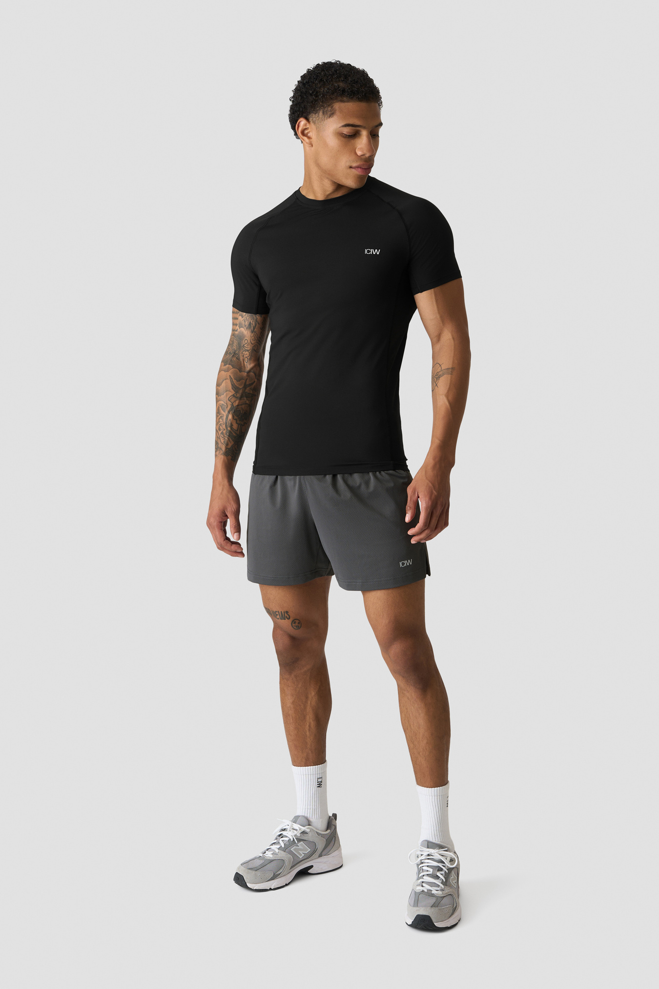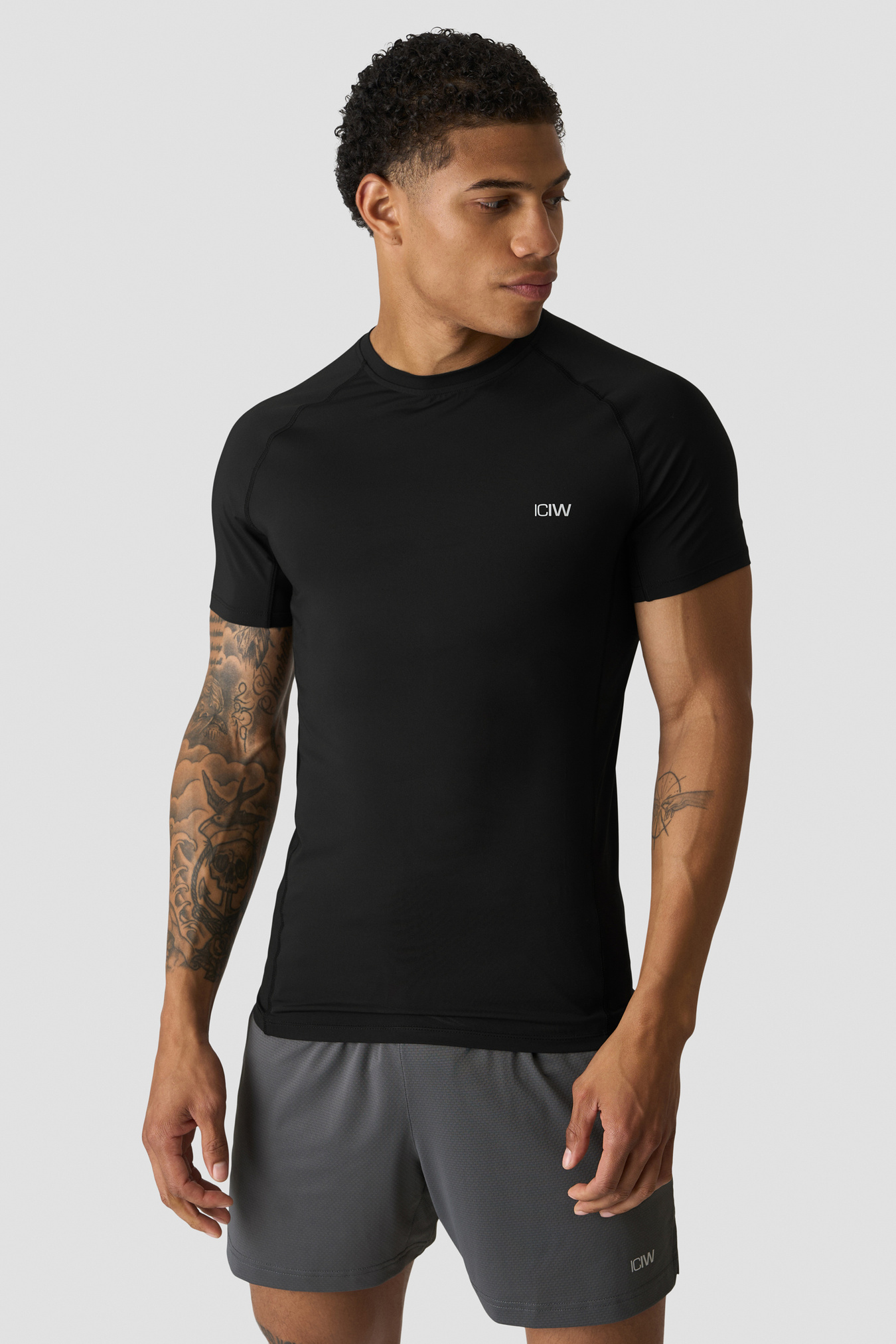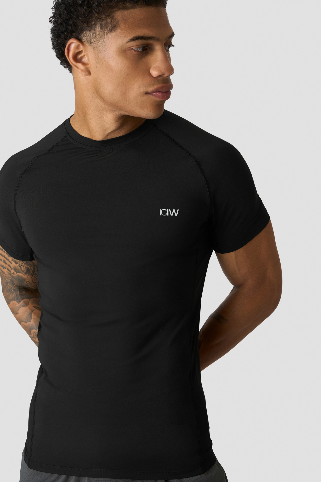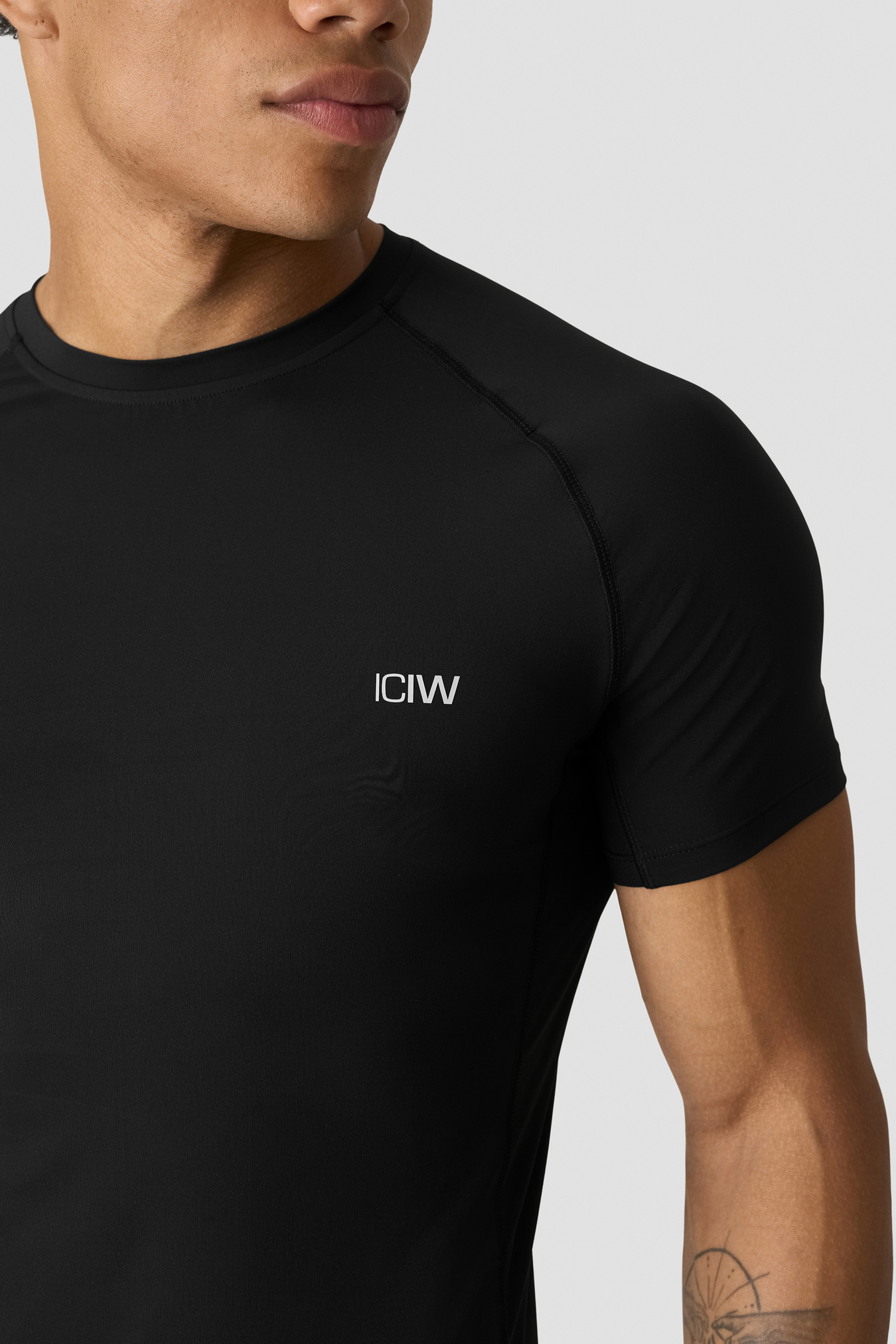 Workout top with mesh panels. Stride Muscle Fit T-shirt is made for the toughest workouts. Engineered for optimal breathability and flexibility, this top features strategically placed mesh panels at the sides, ensuring ventilation and moisture management throughout your training sessions. The tight fit and raglan sleeves accentuates your physique while providing unrestricted movement, making it an ideal shirt for various athletic pursuits. Mesh at sides. ICIW logo at front. Athletic fit. 86% Recycled Nylon, 14% Elastan. Mesh inserts: 72% Nylon, 28% Elastan.