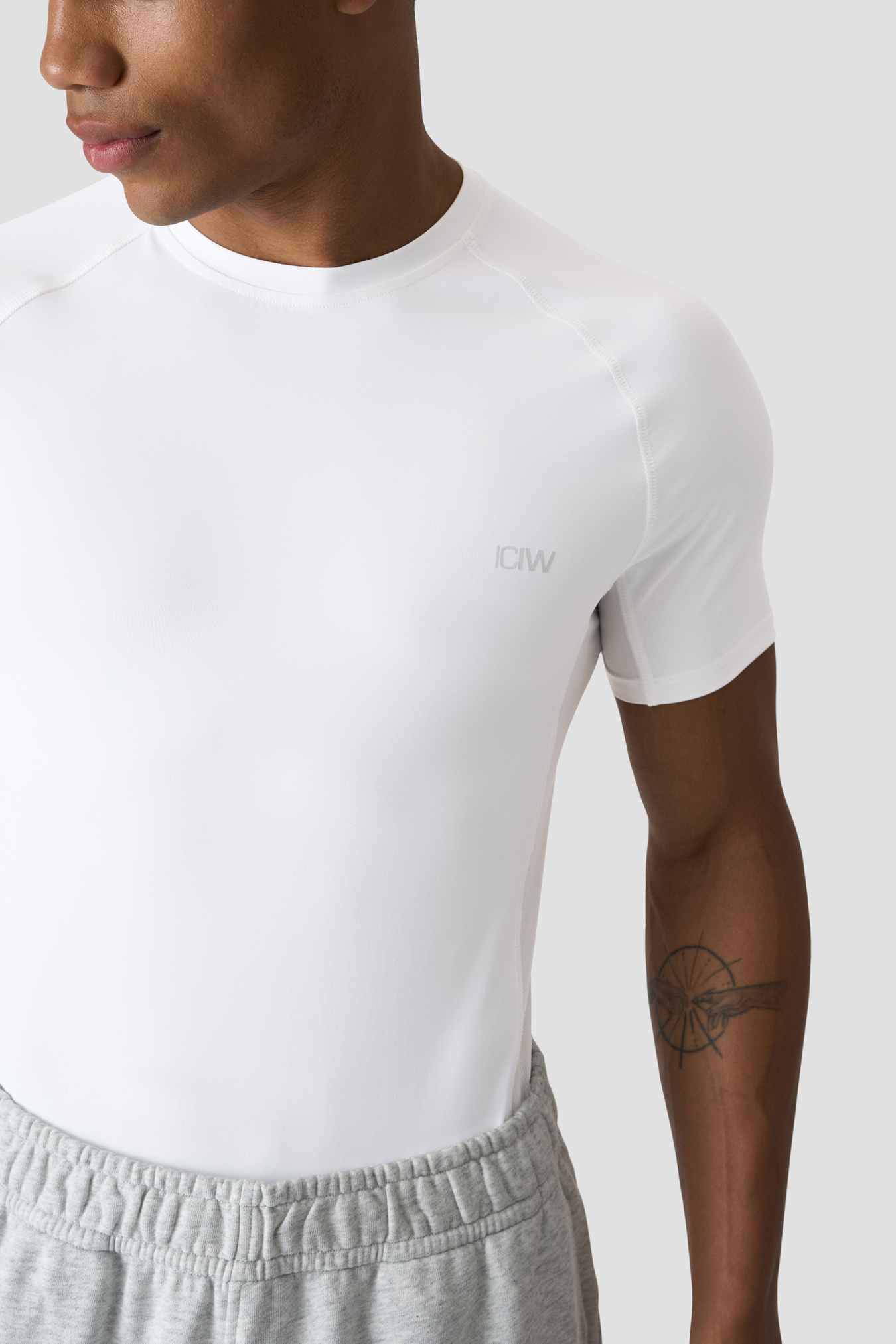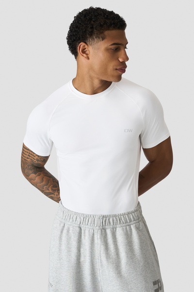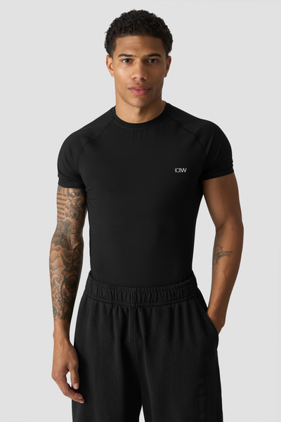 Workout top with mesh panels. Stride Muscle Fit T-shirt is made for the toughest workouts. Engineered for optimal breathability and flexibility, this top features strategically placed mesh panels at the sides, ensuring ventilation and moisture management throughout your training sessions. The tight fit and raglan sleeves accentuates your physique while providing unrestricted movement, making it an ideal shirt for various athletic pursuits. Mesh at sides. ICIW logo at front. Athletic fit. 86% Recycled Nylon, 14% Elastan. Mesh inserts: 72% Nylon, 28% Elastan.