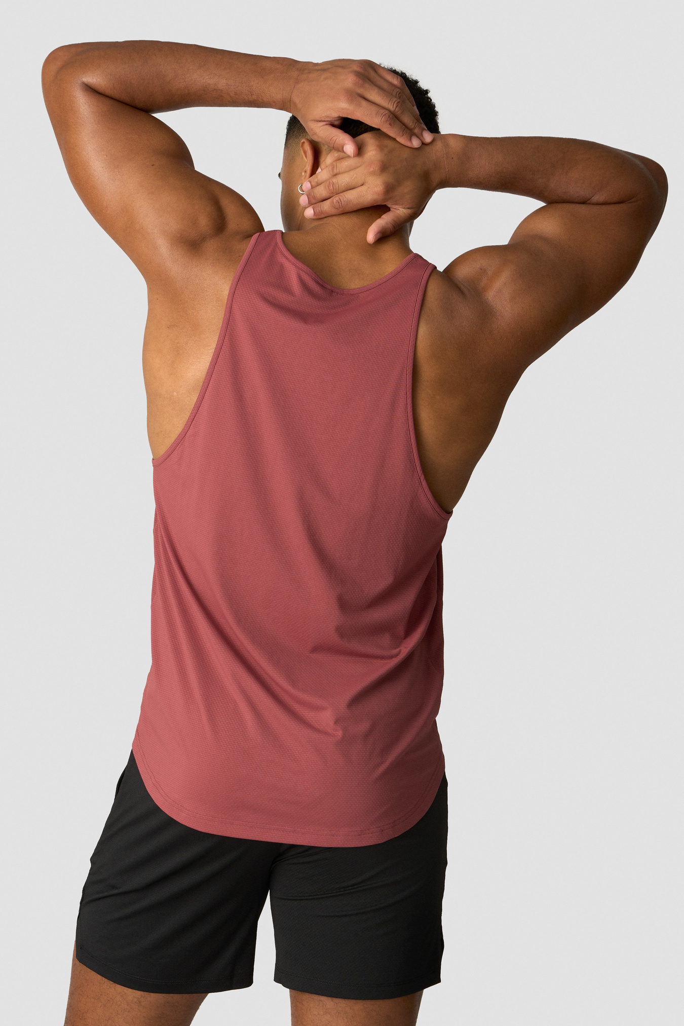 Training top in a mesh material. Stride Stringer Top is made for the gym and heavy workouts. It's made out of a lightweight waffle mesh material that will keep you cool. Slightly longer in the back, small side slits and no sleeves will give you full mobility. Great breathability, longer back for comfort and style, sleeveless style, ICIW logo at front, standard fit. 90% Recycled polyester 10% Elastan