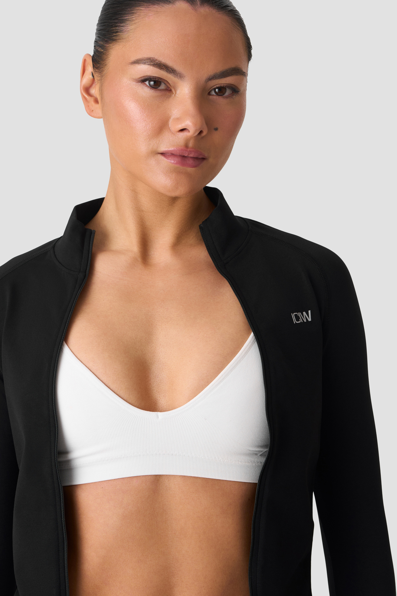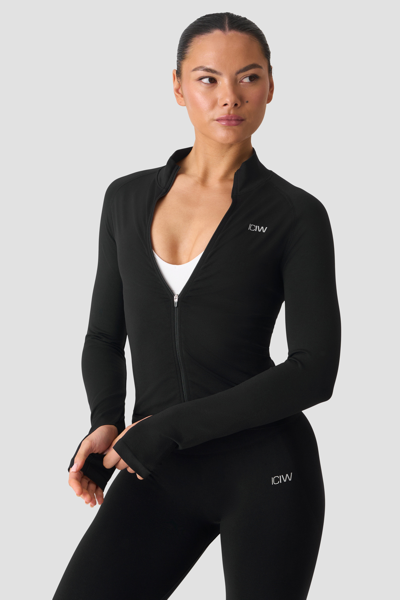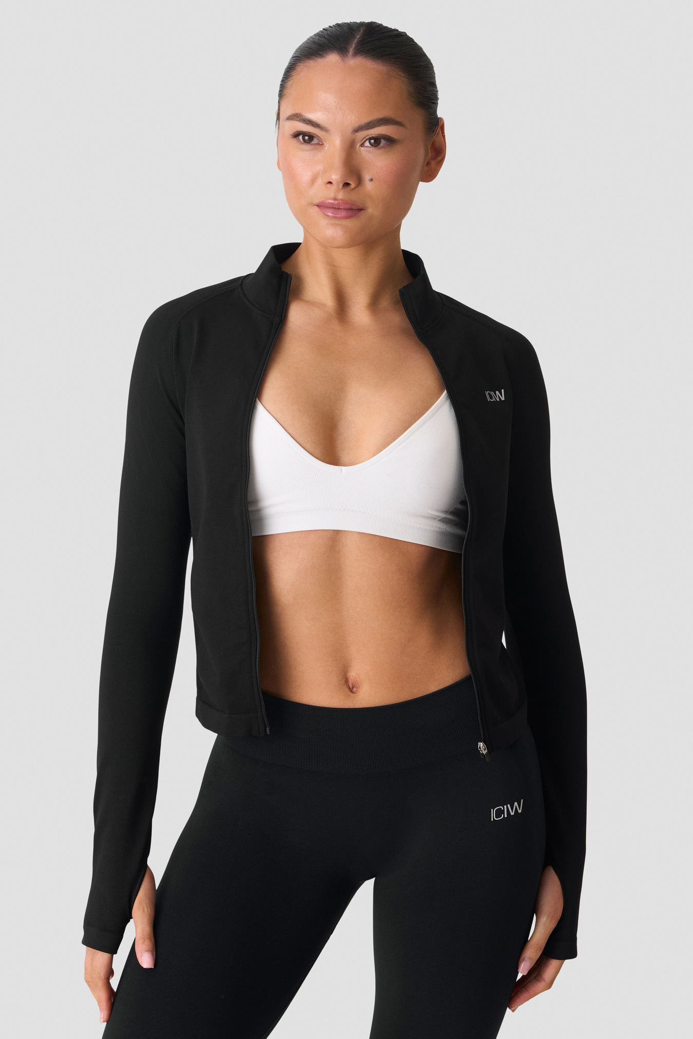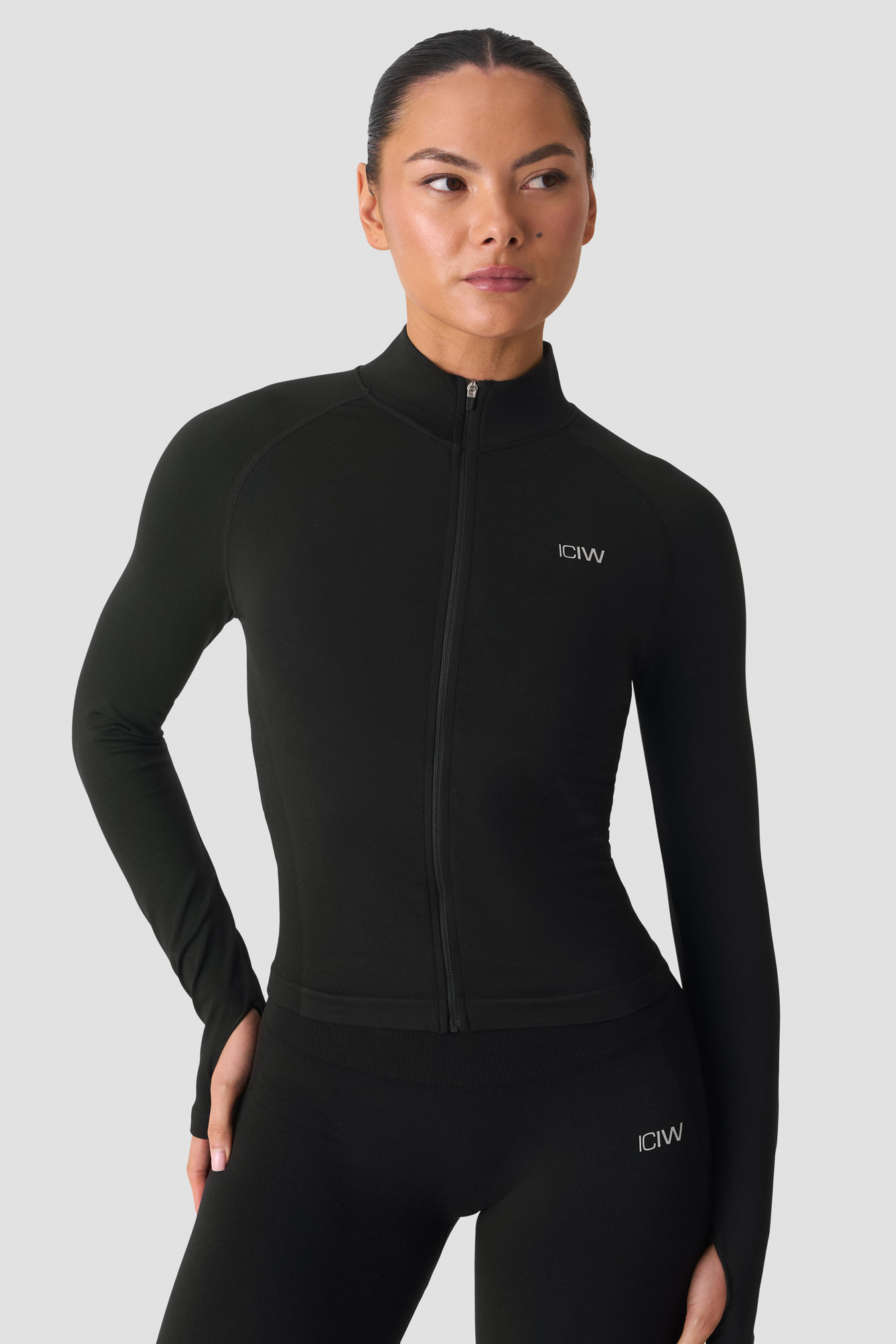 Seamless full‑zip jacket with four‑way stretch. The Smooth Seamless Zip Jacket has an athletic fit that hugs without restricting, ideal for warm‑ups, gym sessions and everyday layering. The super‑soft knit is engineered with pique knit details along the sides for a flattering look, while thumbholes keep sleeves in place for extra comfort. Finished with a printed reflective ICIW logo on the chest and a clean, minimalist look. 92% recycled polyamide, 8% elastane.