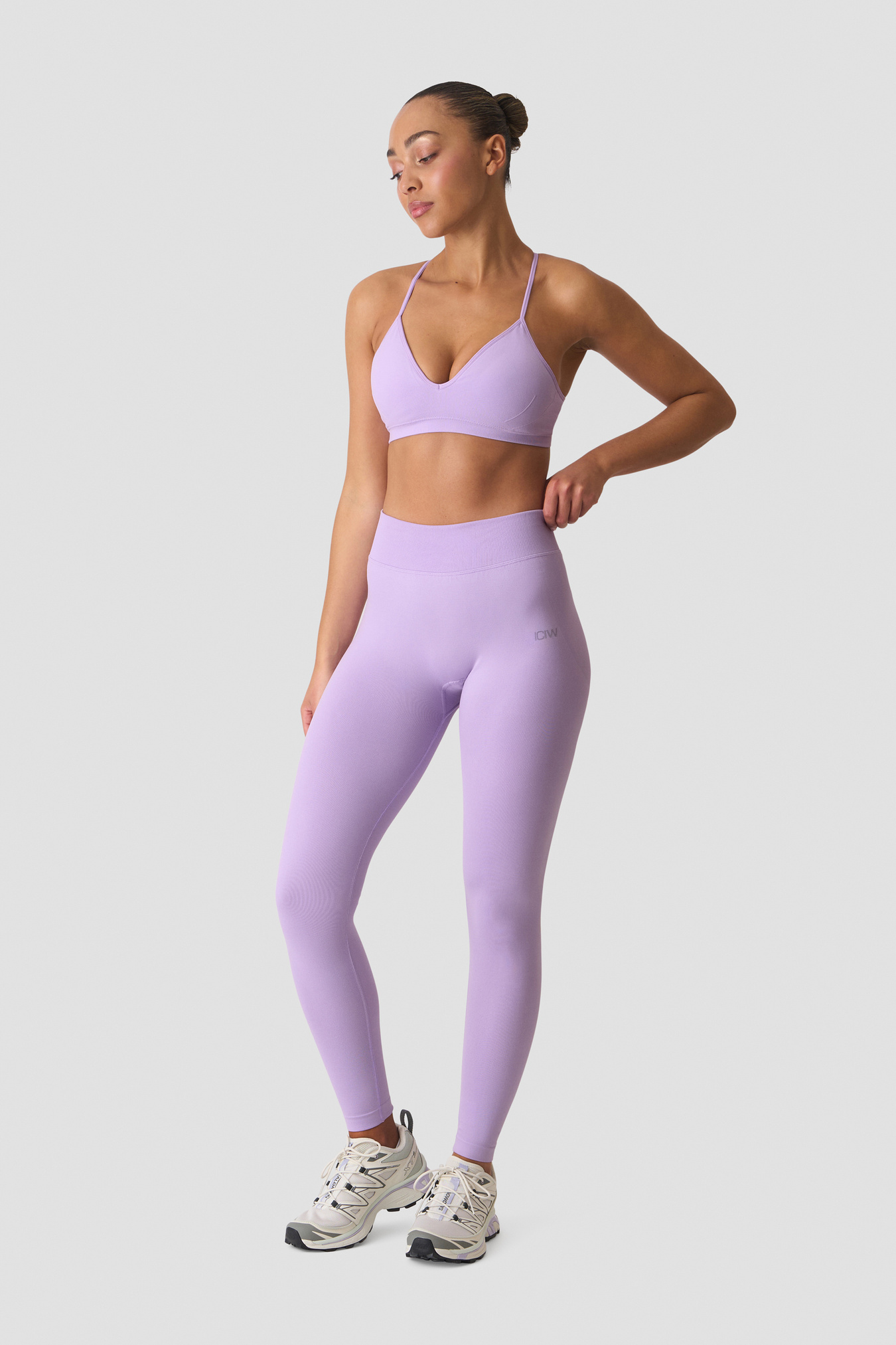 Seamless tights with a flattering V-shaped waistband. Smooth Seamless V-Shape Tights are designed to be your go-to for everything from studio sessions to everyday comfort. The super-soft seamless jersey knit sits like a second skin and minimises chafing, while the ribbed V-waist sculpts and stays in place for a smooth silhouette. Clean look with subtle branding and no side seams. 92% Recycled Polyamide, 8% Elastane.