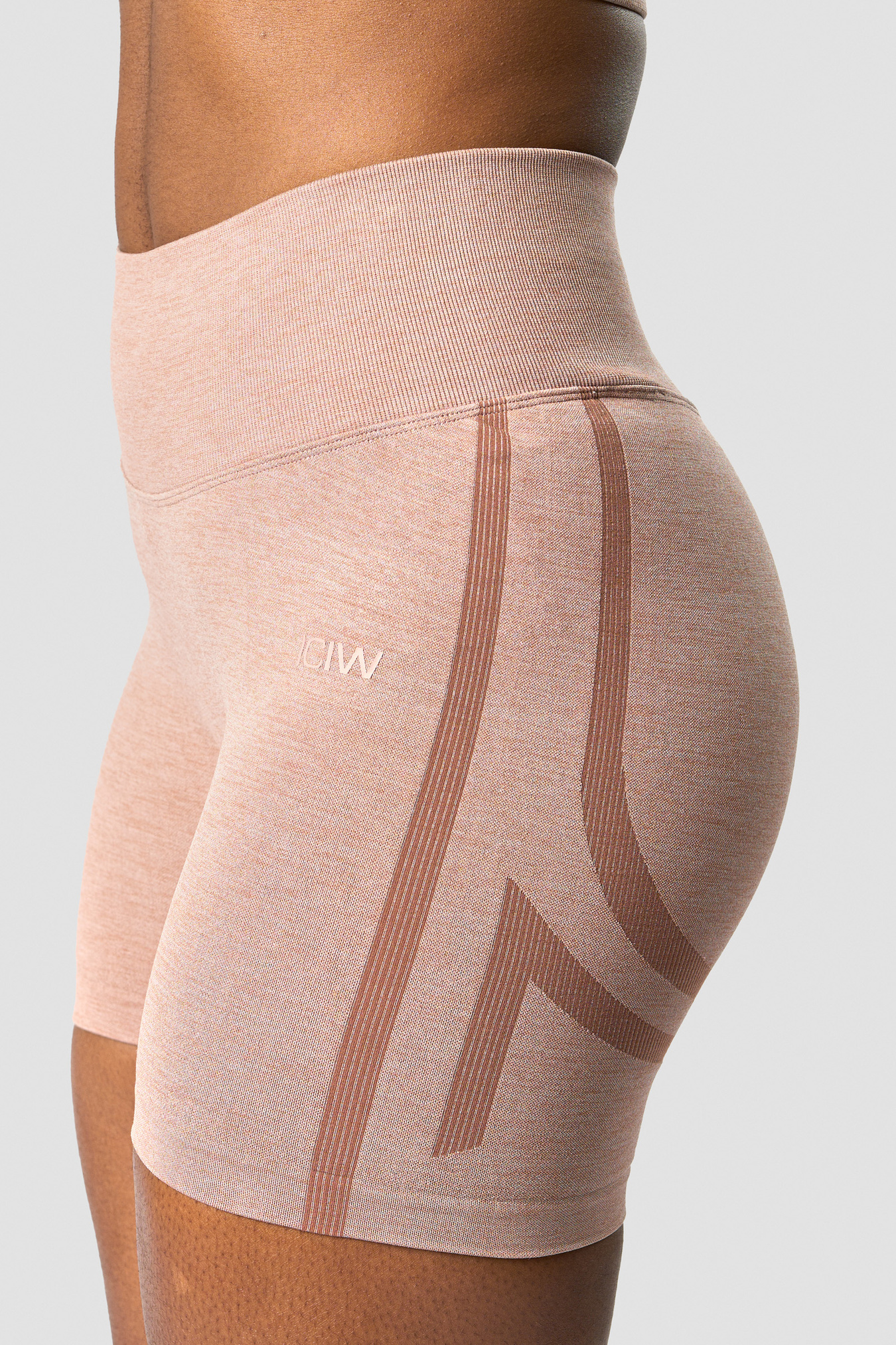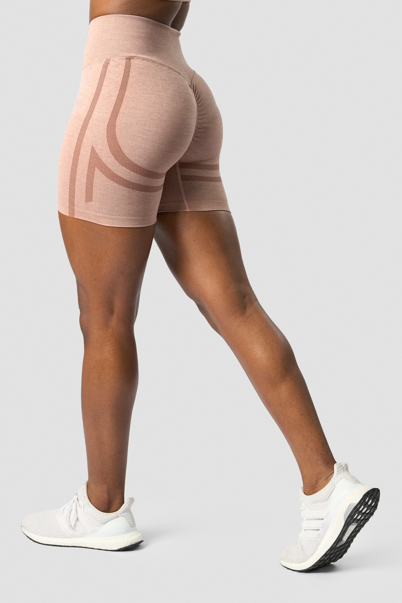 Seamless shorts with scrunch detail. This customer favorite is back with a new and improved fit. Rush Seamless shorts will let you perform at your best during training. The soft seamless material is stretchy and will keep you dry with our SWEATTECH™ technology, and the high waist makes the perfect fit. The scrunch detail at the back, the ribbed waistband and the knitting all results in a comfortable and flattering pair of shorts. The shorts feature SWEATTECH™ technology, ICIW logo, V-shape waistband at the back, scrunch technology at the back, and 4-way stretch. They have a 12 cm inseam in size M, high waist and are true to size. 54% Recycled Nylon 38% Recycled Polyester 8% Elastan.