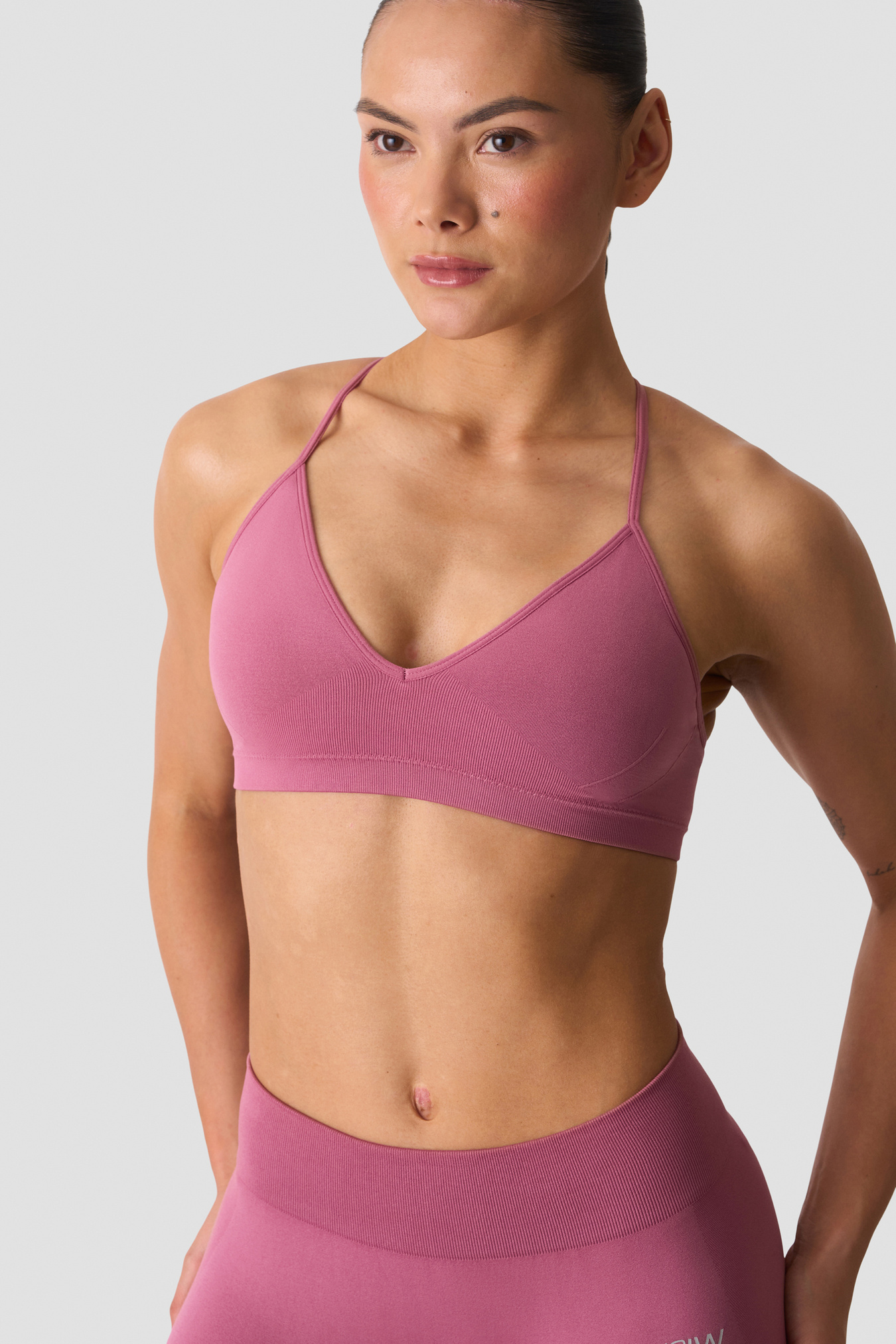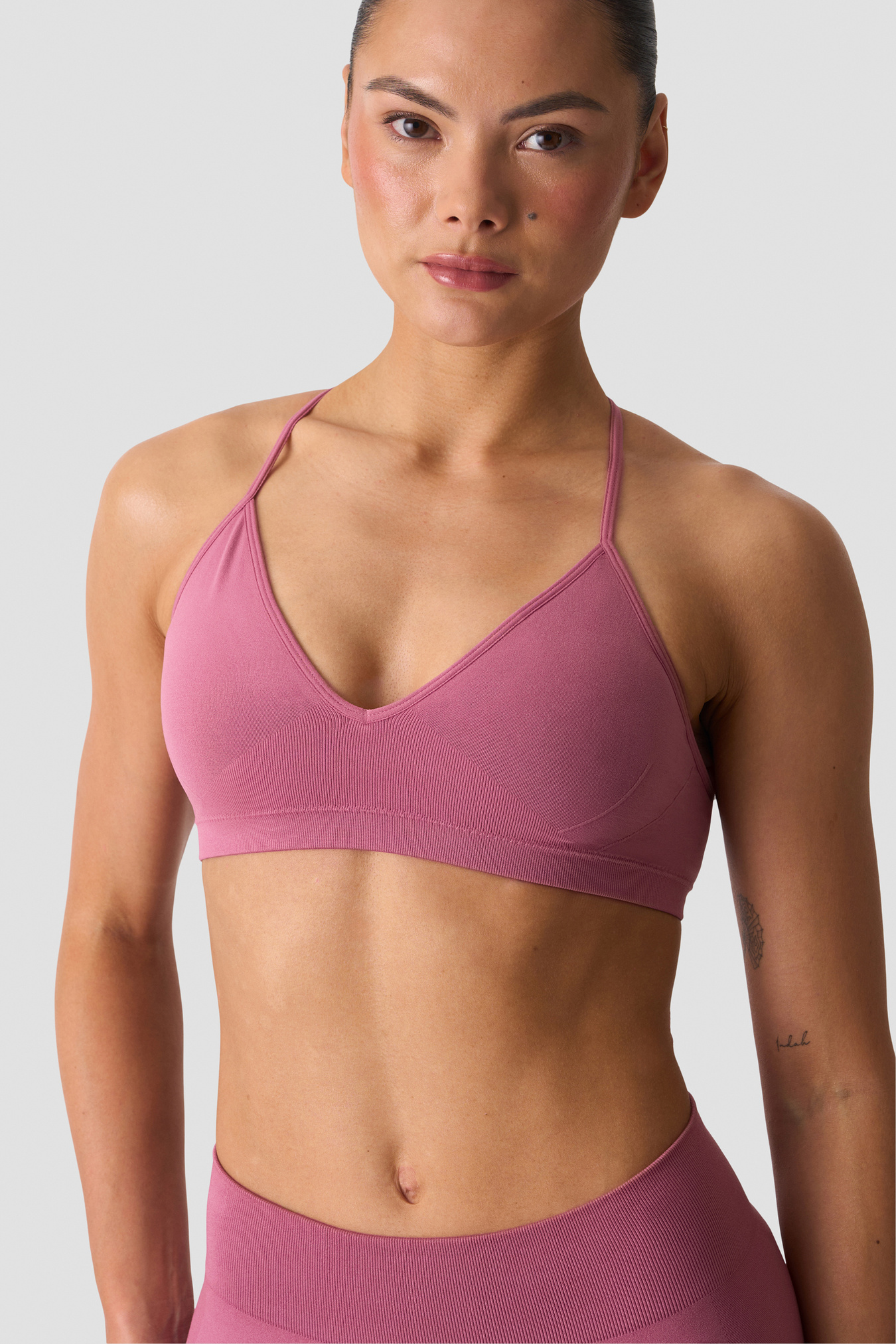 Soft, seamless, and strappy — the Smooth Seamless Strappy Sports Bra shows off your back gains while keeping you comfortable. It offers low support with removable cups, perfect for light workouts or everyday wear.