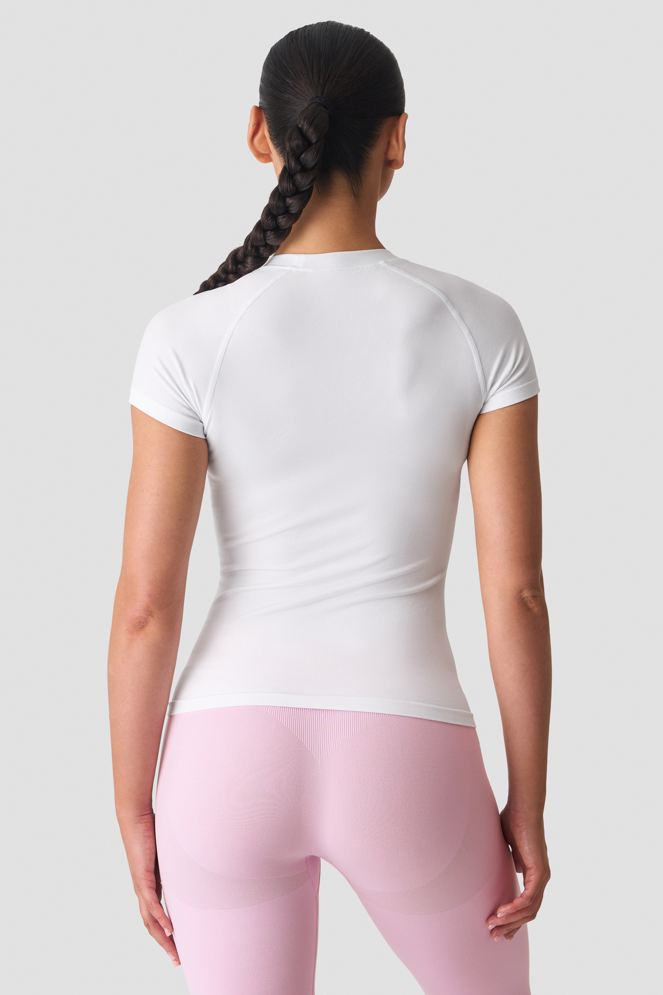 Ultra-soft seamless training tee designed for comfort and freedom of movement. The smooth jersey knit minimises friction for a second-skin feel, while the athletic fit follows your body without feeling restrictive. Lightweight and breathable, it works just as well for intense gym sessions as it does for everyday wear, and the clean, no-print look pairs easily with the rest of your kit. Made with recycled polyamide yarns for a lower impact. 92% Polyamide, 8% Elastane.