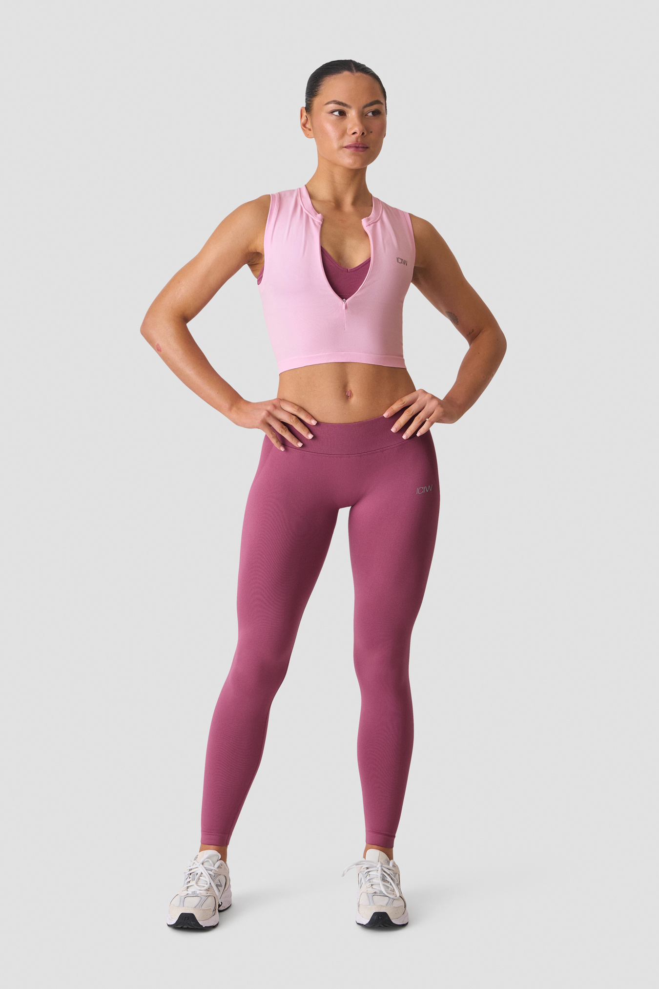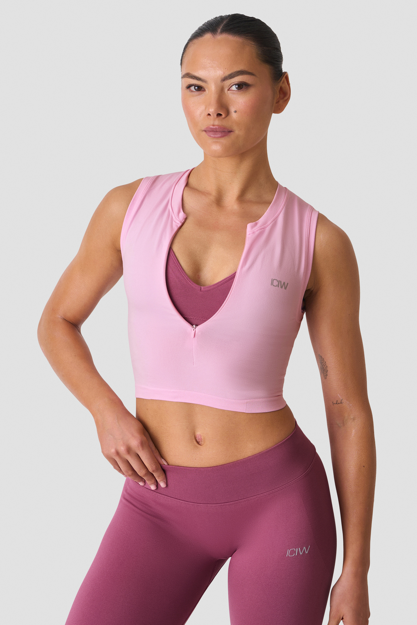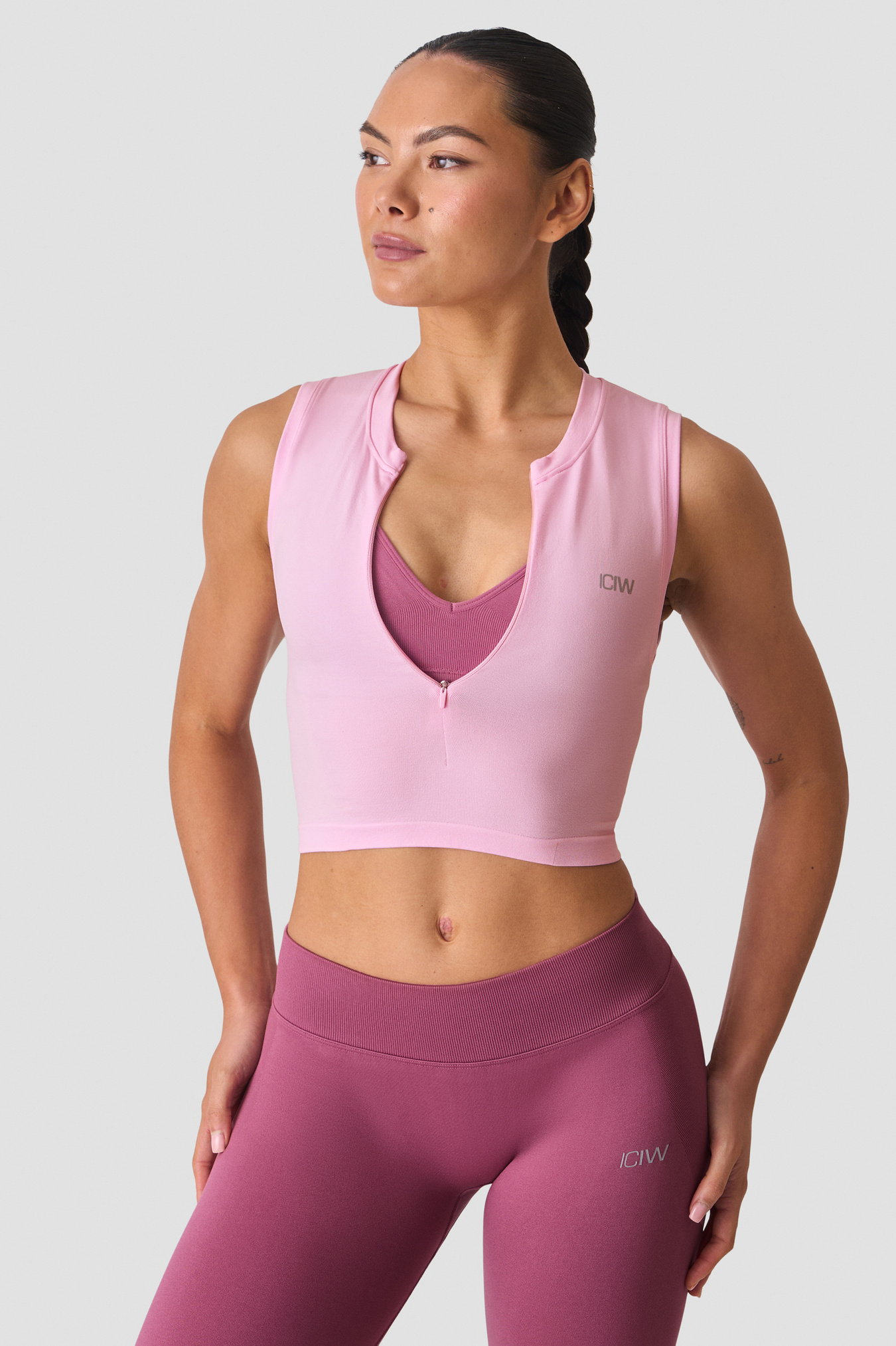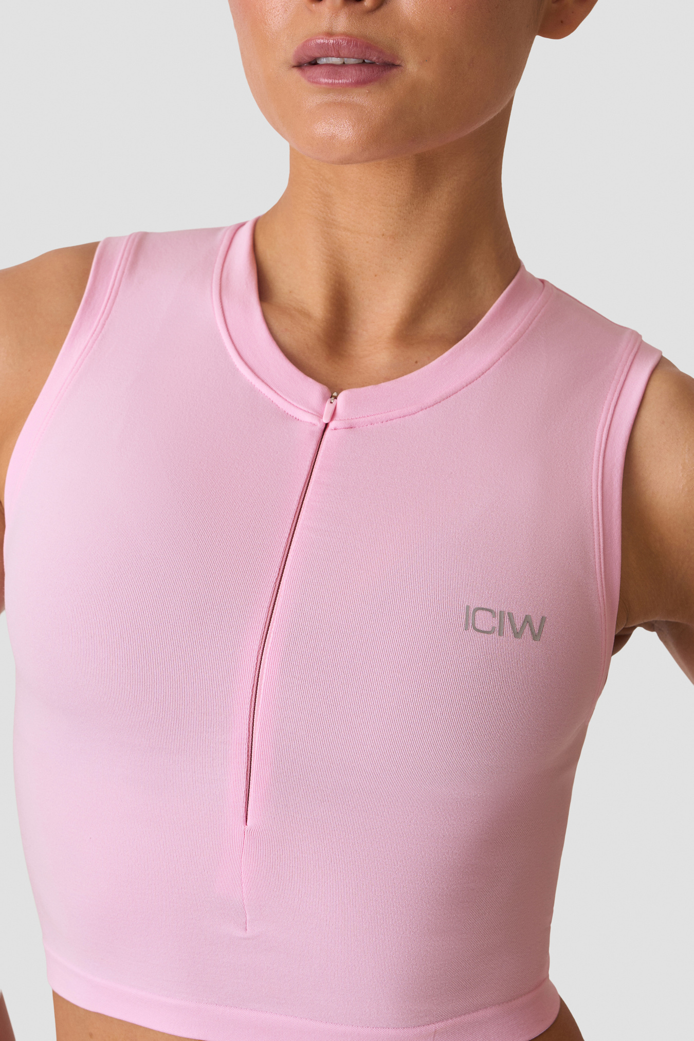 Seamless tank with 1/2 zip for training and layering. Smooth Seamless 1/2 Zip Tank is crafted from a super-soft jersey knit that stretches with every move, while the seamless construction minimises chafing for all‑day comfort. The 1/2 zip allows easy on/off and adjustable ventilation, and the athletic fit sits close to the body without feeling restrictive. Finished with subtle ICIW heat‑transfer branding.
