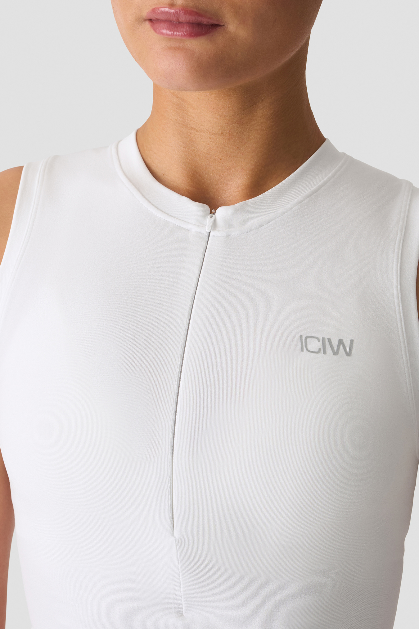 Seamless tank with 1/2 zip for training and layering. Smooth Seamless 1/2 Zip Tank is crafted from a super-soft jersey knit that stretches with every move, while the seamless construction minimises chafing for all‑day comfort. The 1/2 zip allows easy on/off and adjustable ventilation, and the athletic fit sits close to the body without feeling restrictive. Finished with subtle ICIW heat‑transfer branding.