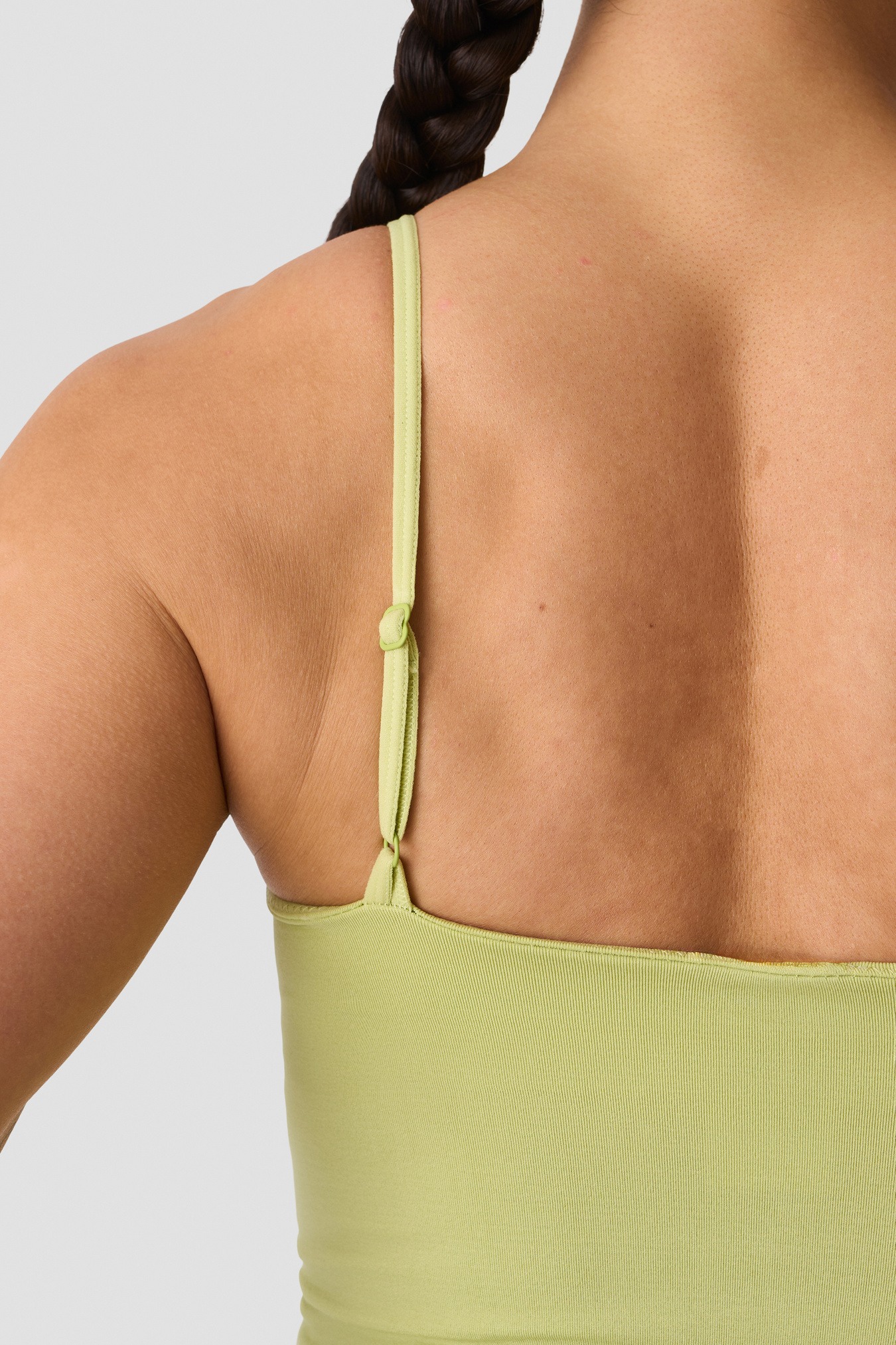 Seamless 2-in-1 strappy tank for studio days and everyday training. Smooth Seamless 2-in-1 Strappy Tank pairs a soft jersey seamless knit with an inner bra for effortless comfort and convenience. The slim, athletic fit sits close to the body, while the strappy design and adjustable shoulder straps let you tailor the fit. Low support with removable cups gives light shaping and coverage, ideal for yoga, Pilates and other low-impact sessions. The fabric feels super soft against the skin and the seamless construction minimises distractions so you can focus on your movement. Made with recycled fibres to reduce environmental impact. 92% Recycled Polyamide, 8% Elastane.