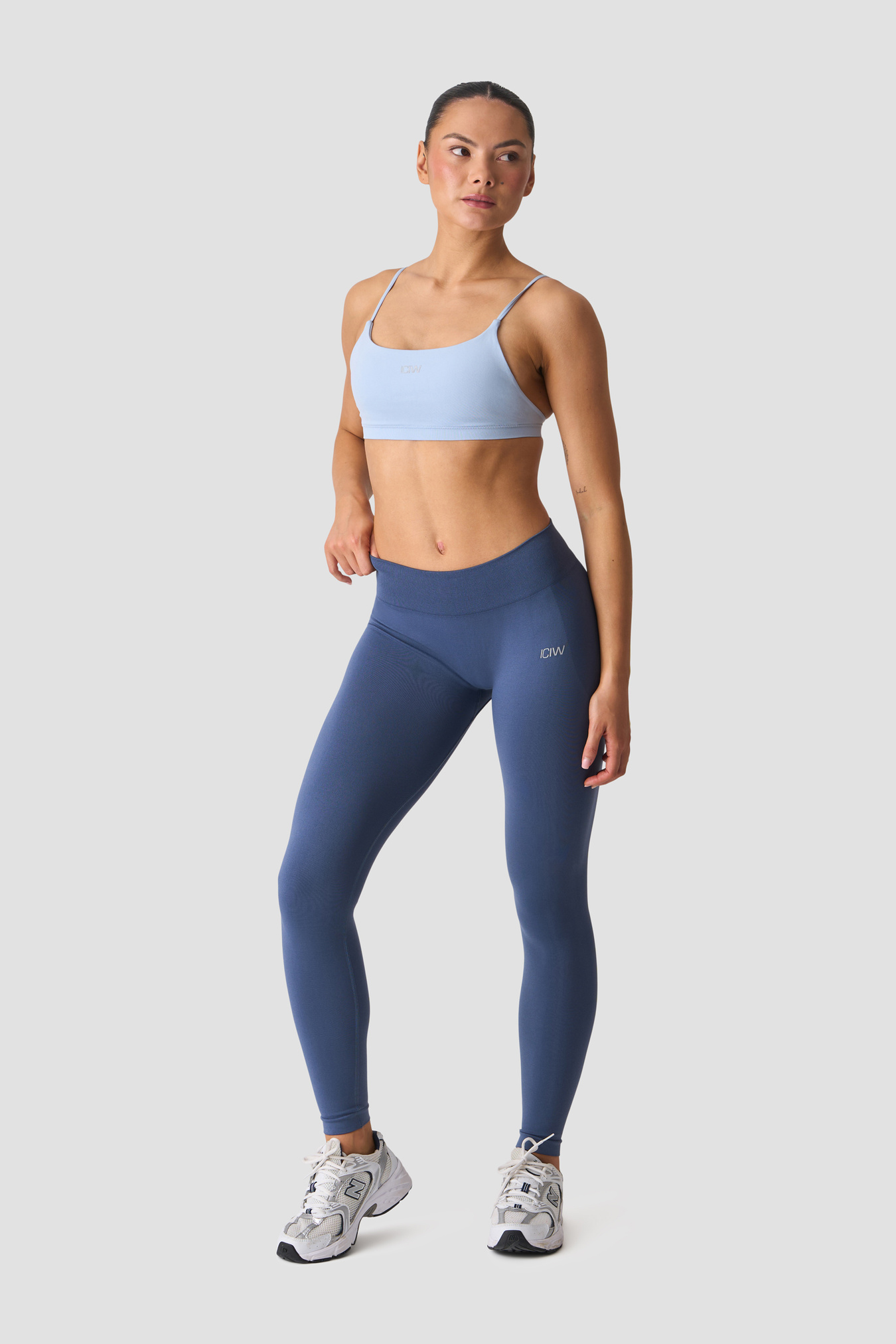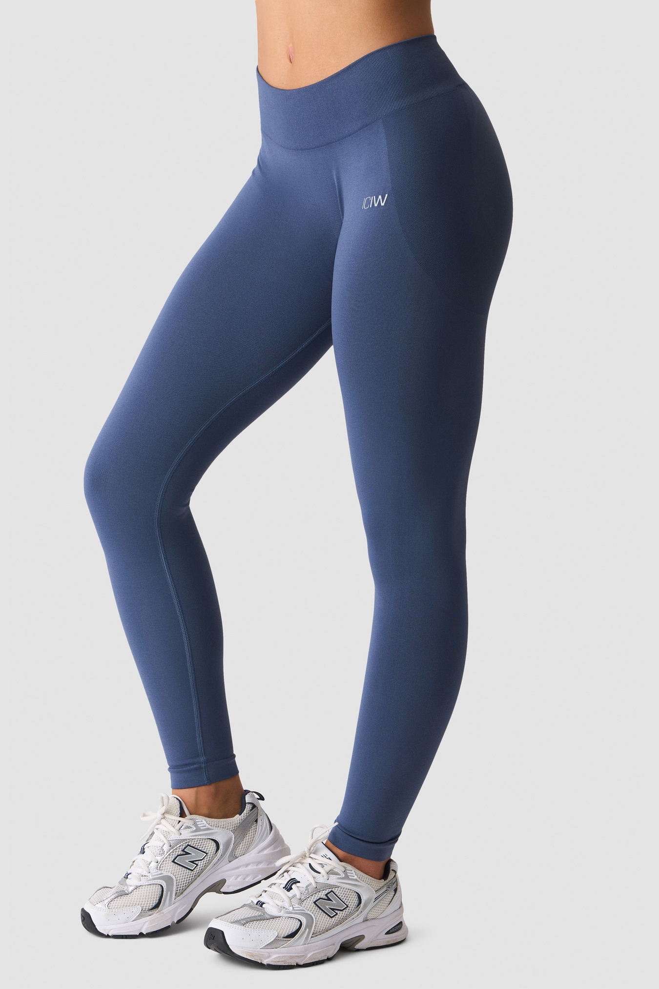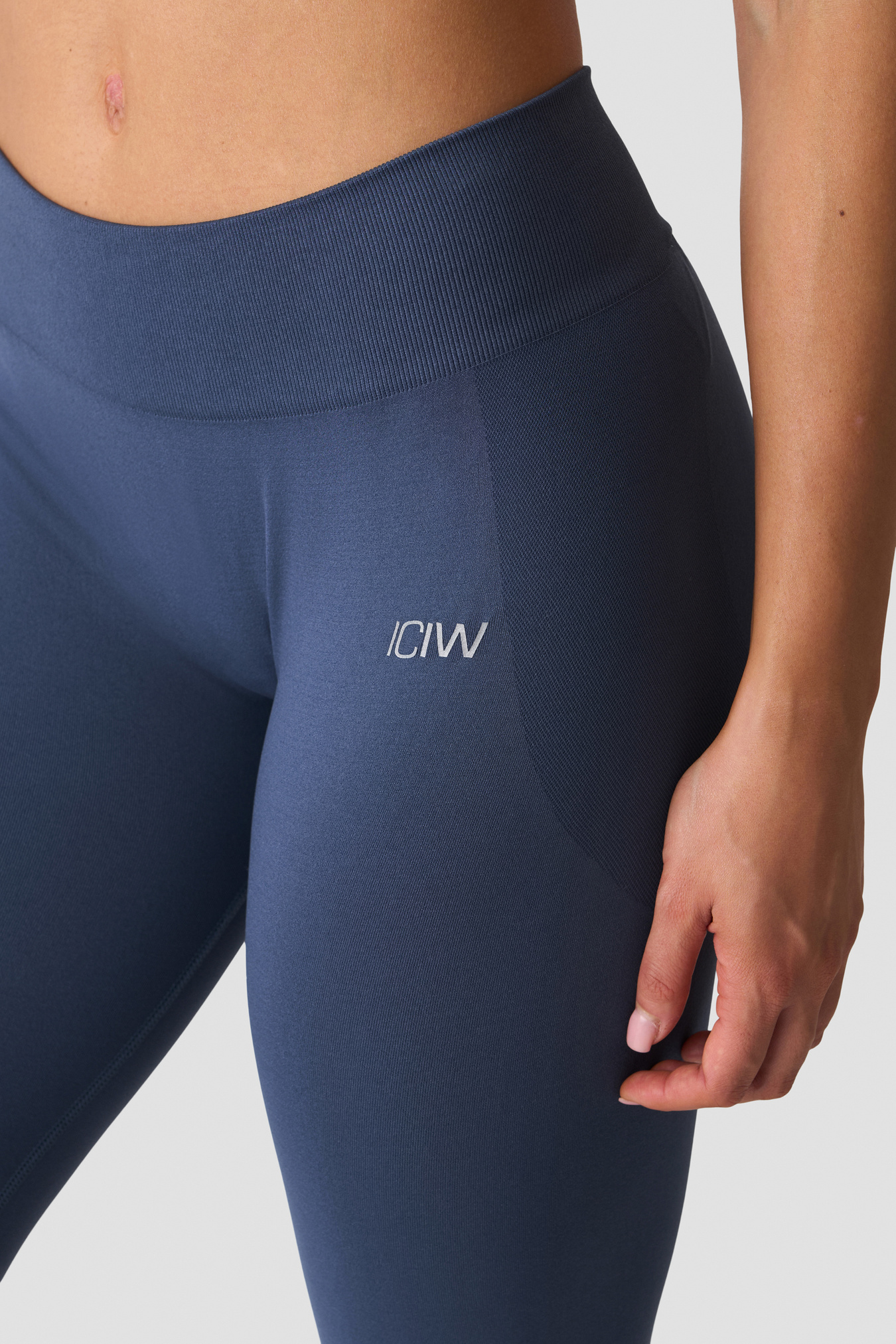 Seamless mid-rise tights with a flattering V-shaped waistband. Smooth Seamless Mid-Rise V-shape Tights are crafted from a super-soft recycled polyamide blend for a smooth feel and confident fit. The seamless knit minimises chafing and creates a sleek silhouette, while the mid-rise waist stays put through squats, lunges and everyday movement. Finished with subtle ICIW heat-transfer branding and designed in solid colours for easy pairing. 92% Recycled Polyamide, 8% Elastane.